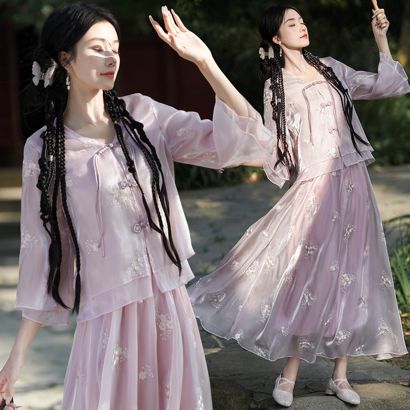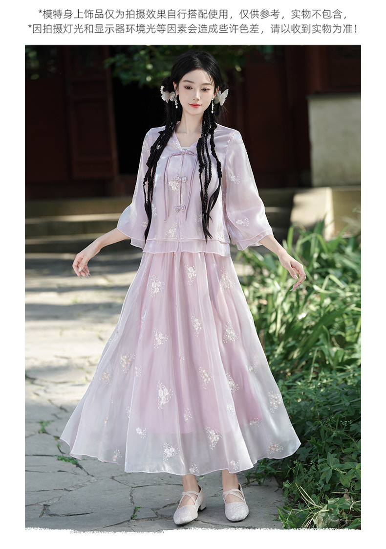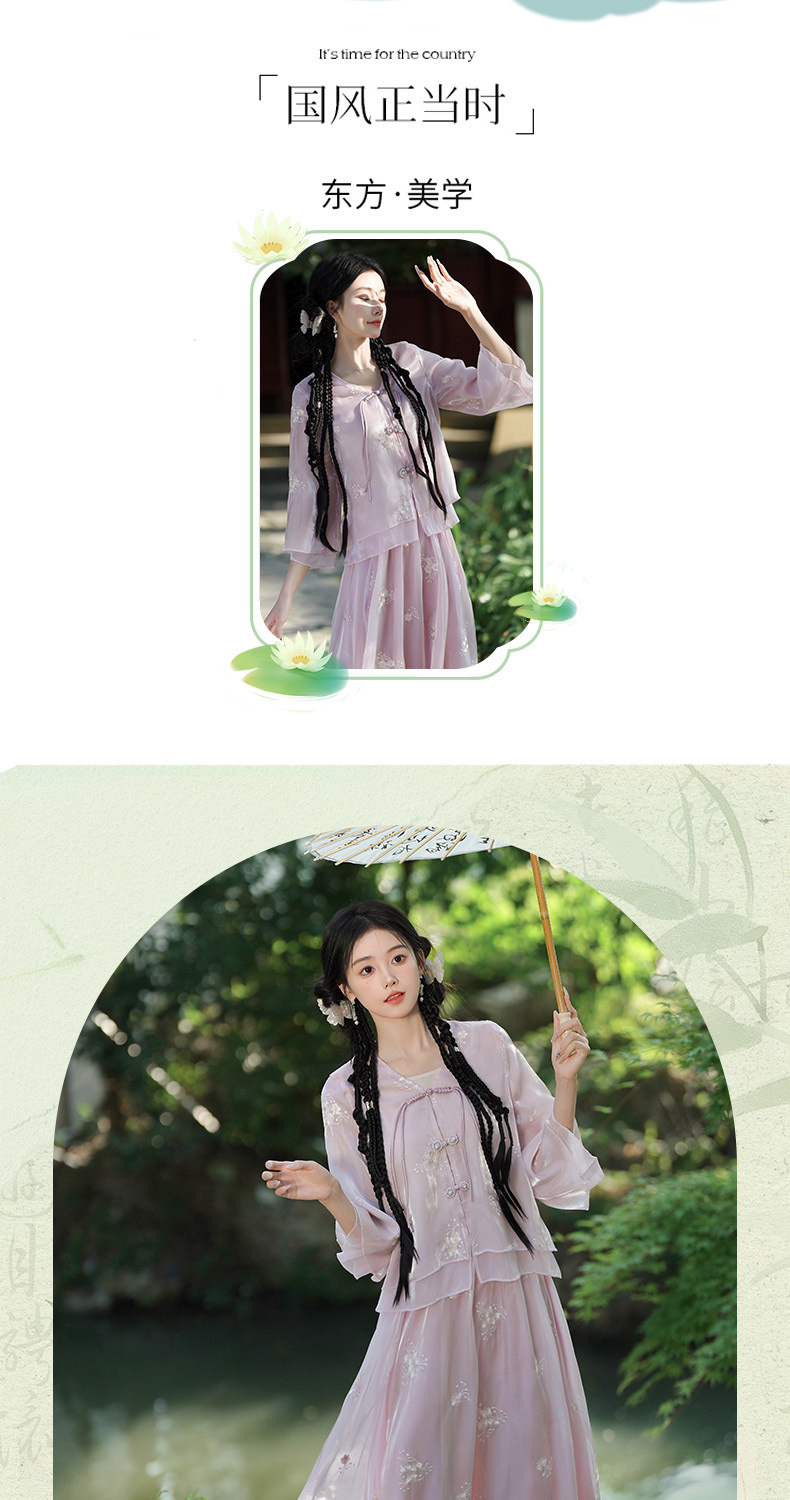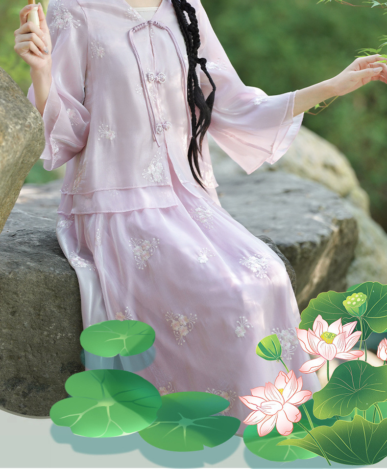새로운 중국 스타일 빈티지 개선 된 우아한 자수 버클 V 넥 카디건 민족 스타일 미드 슬리브 스커트 여성 세트스토어 가기