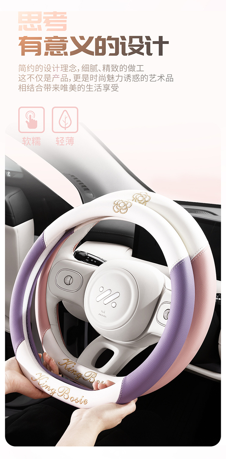 동백 여성 고급 센스 스티어링 휠 커버 초박형 장식 크리에이티브 스티어링 휠 보호 커버 모든 계절을위한 핸들
