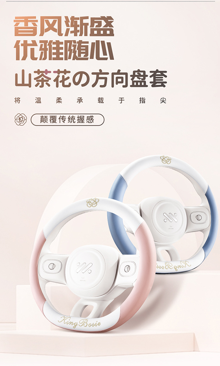 동백 여성 고급 센스 스티어링 휠 커버 초박형 장식 크리에이티브 스티어링 휠 보호 커버 모든 계절을위한 핸들스토어 가기