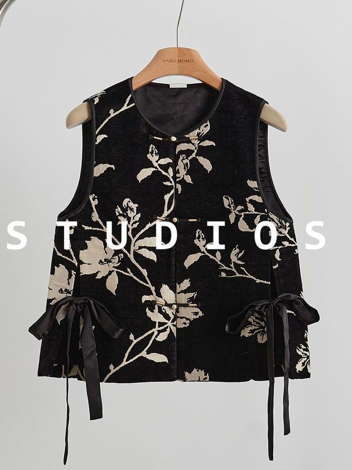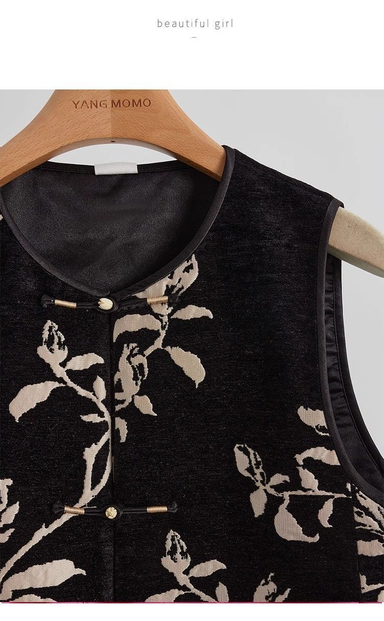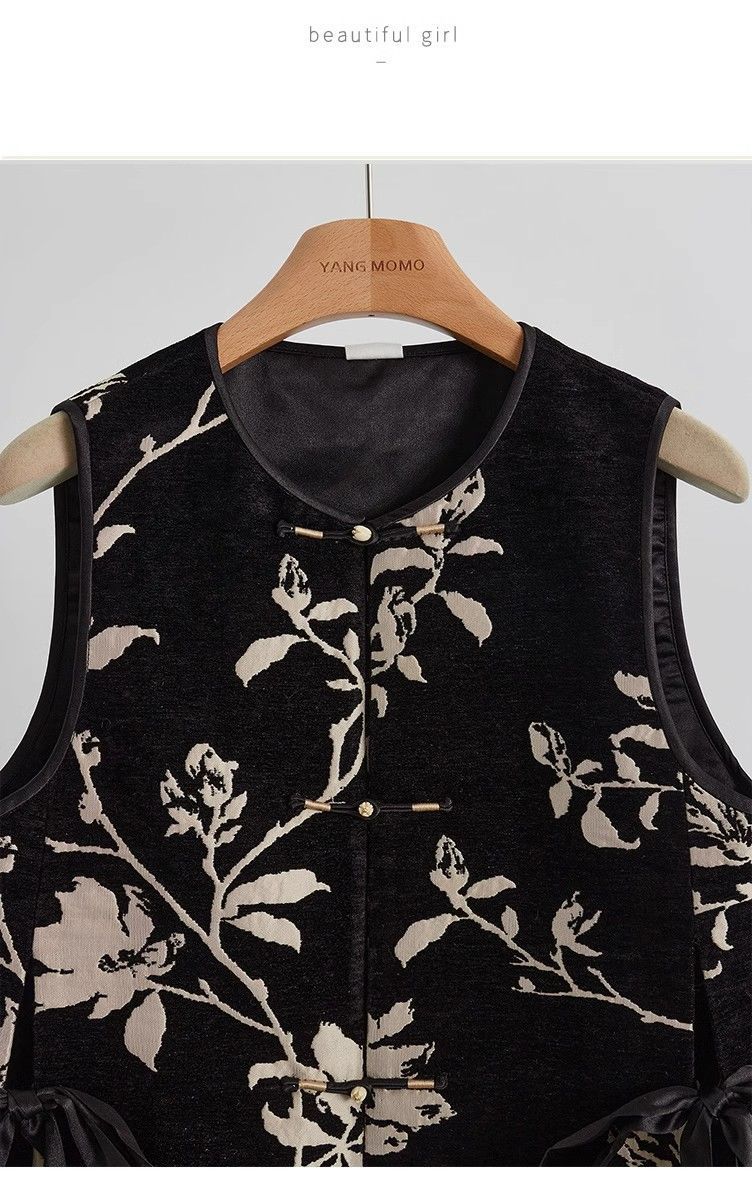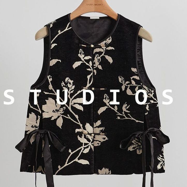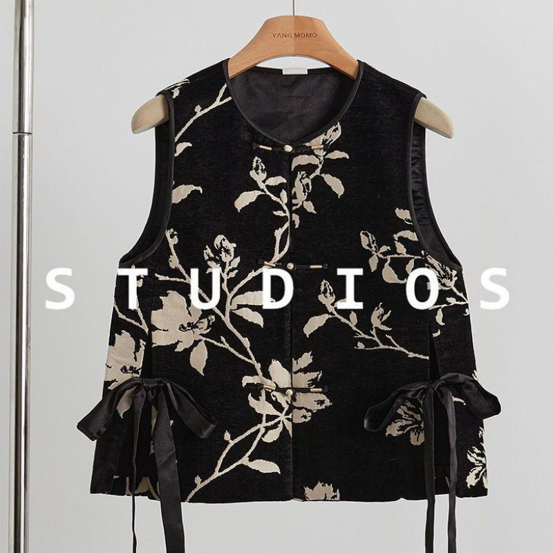 새로운 중국 스타일 쿨 젠 자카드 조끼 우아한 세련된 세련된 조끼 waistcoat 2025 봄 여성 의류스토어 가기