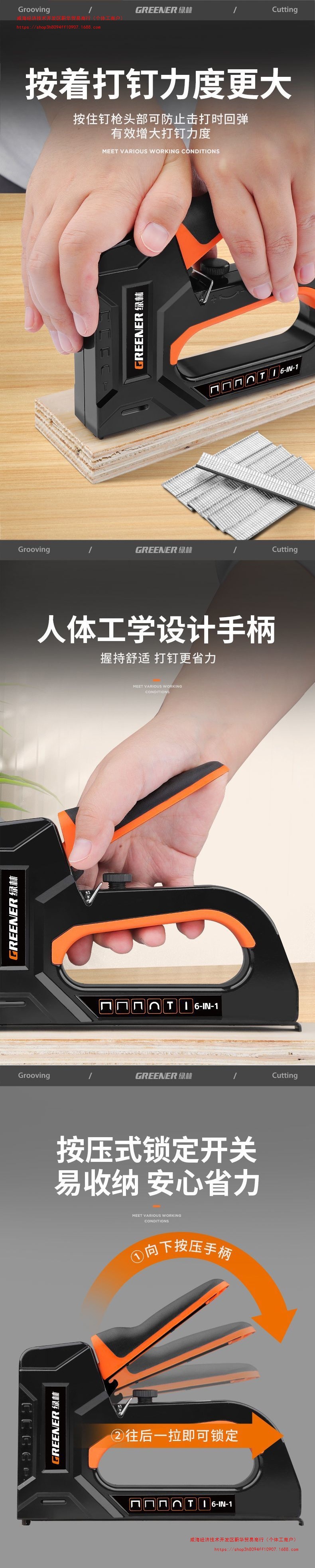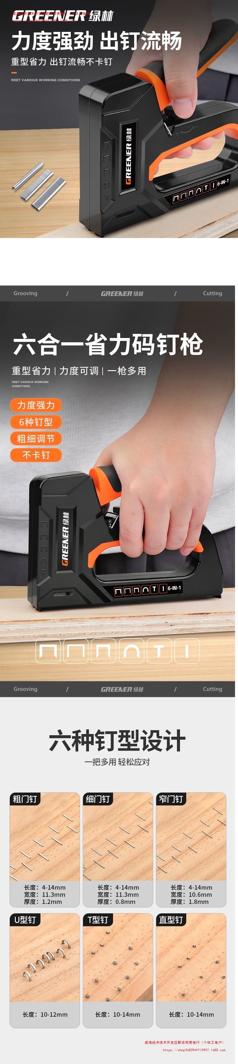 • 6-in-1 노동절약형 네일건(못포함) 2종세트 - 6가지 못타입 각 50개 - 총 300개