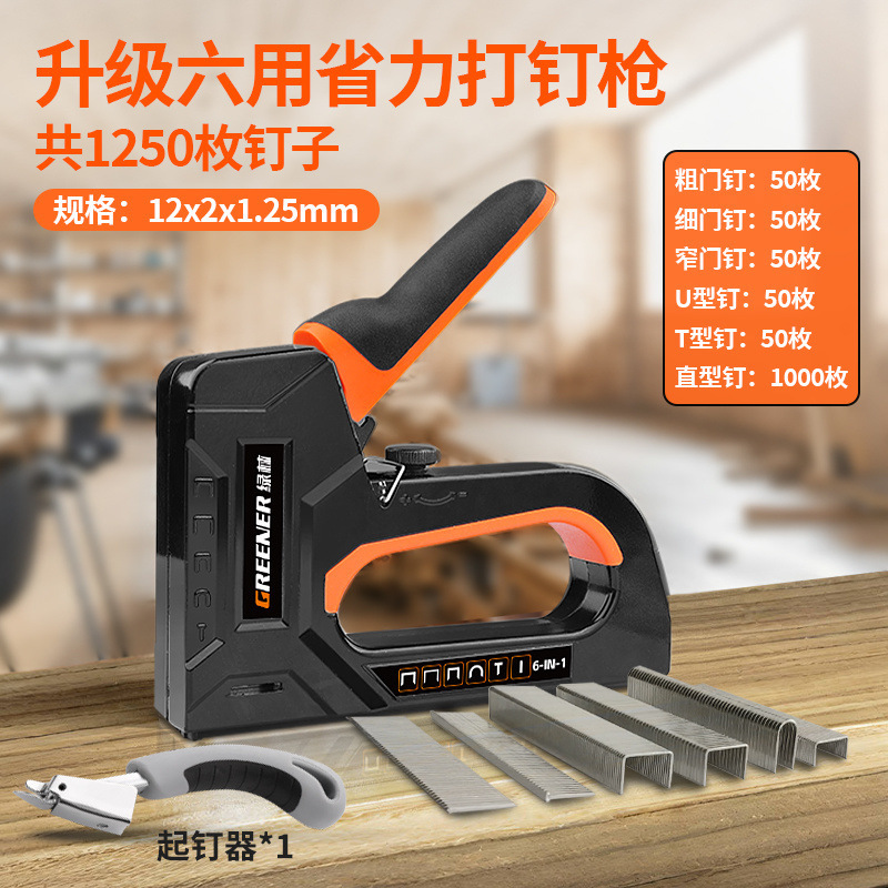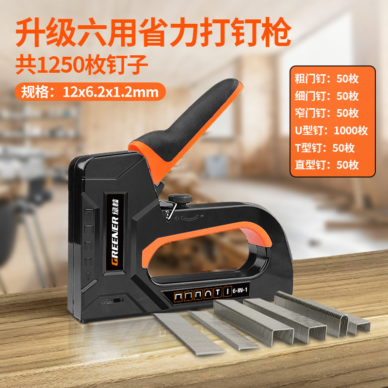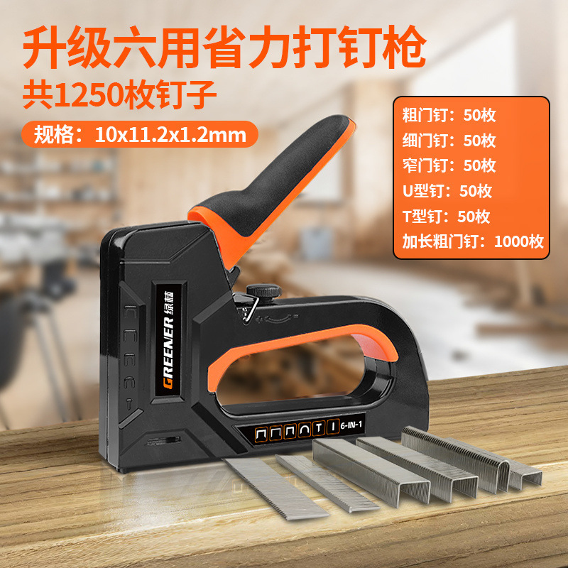 • 6-in-1 노동절약형 못총(못포함) 2종세트 - T자못 1000개 - 총 1250개