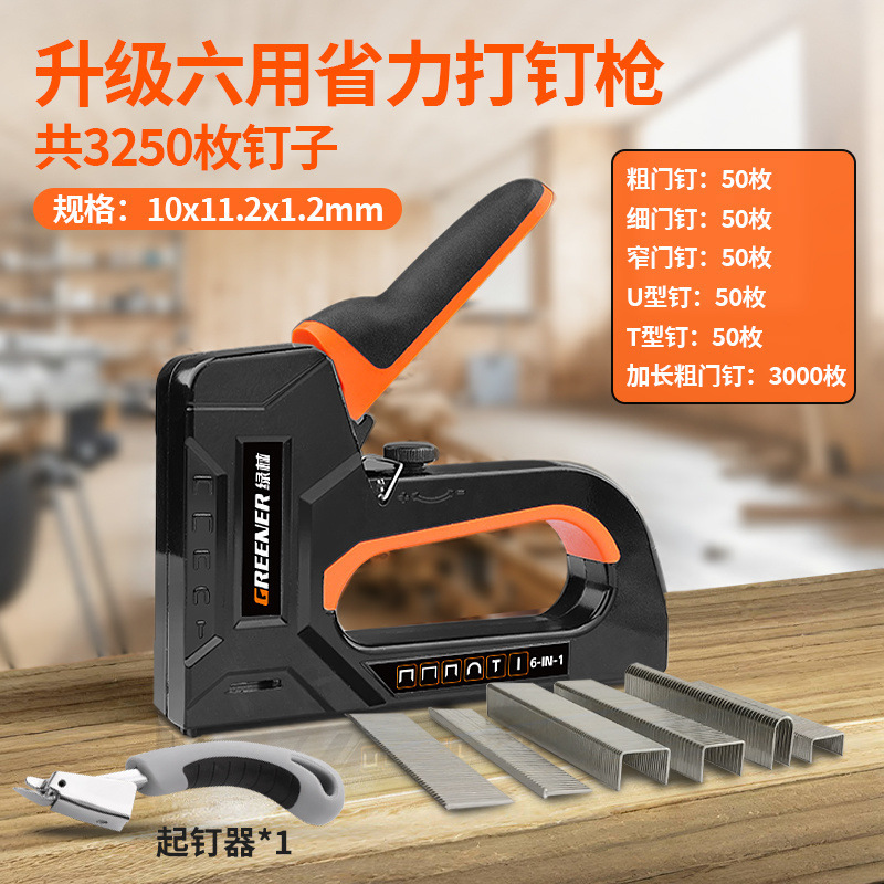 • 6-in-1 노동 절약형 못총(못 포함) 못 제거제 3종 세트 - 10mm 두께의 문 못 1000개 - 총 1250개