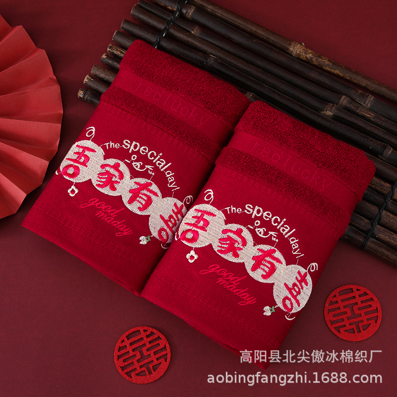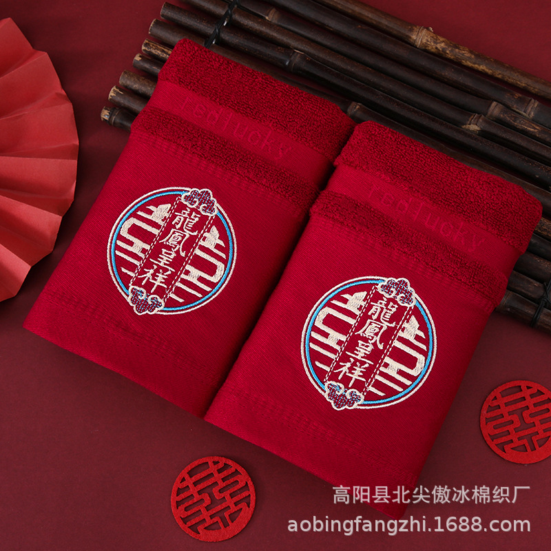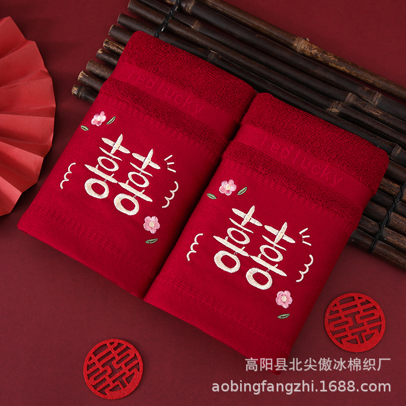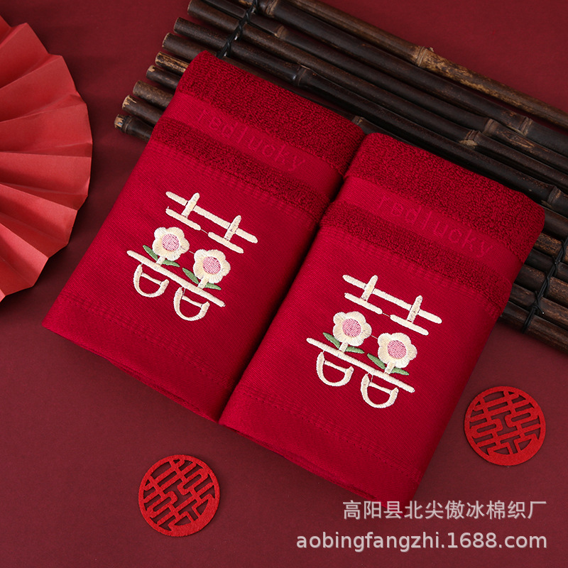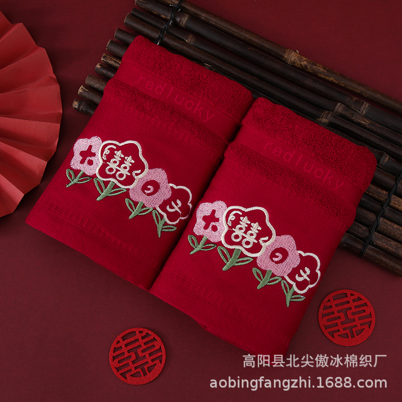 ✅버건디 웨딩 타월 대나무 섬유면 웨딩 페이스 타월 자수 결혼식 단어 도매 신부 반환 결혼식 한 쌍