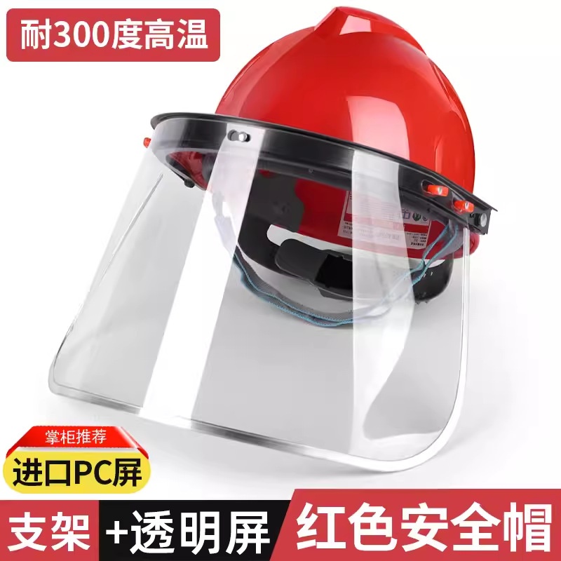 • 빨간색 안전모 + 브래킷 + 수입 PC 소재 투명 스크린 (고온 저항 300℃)