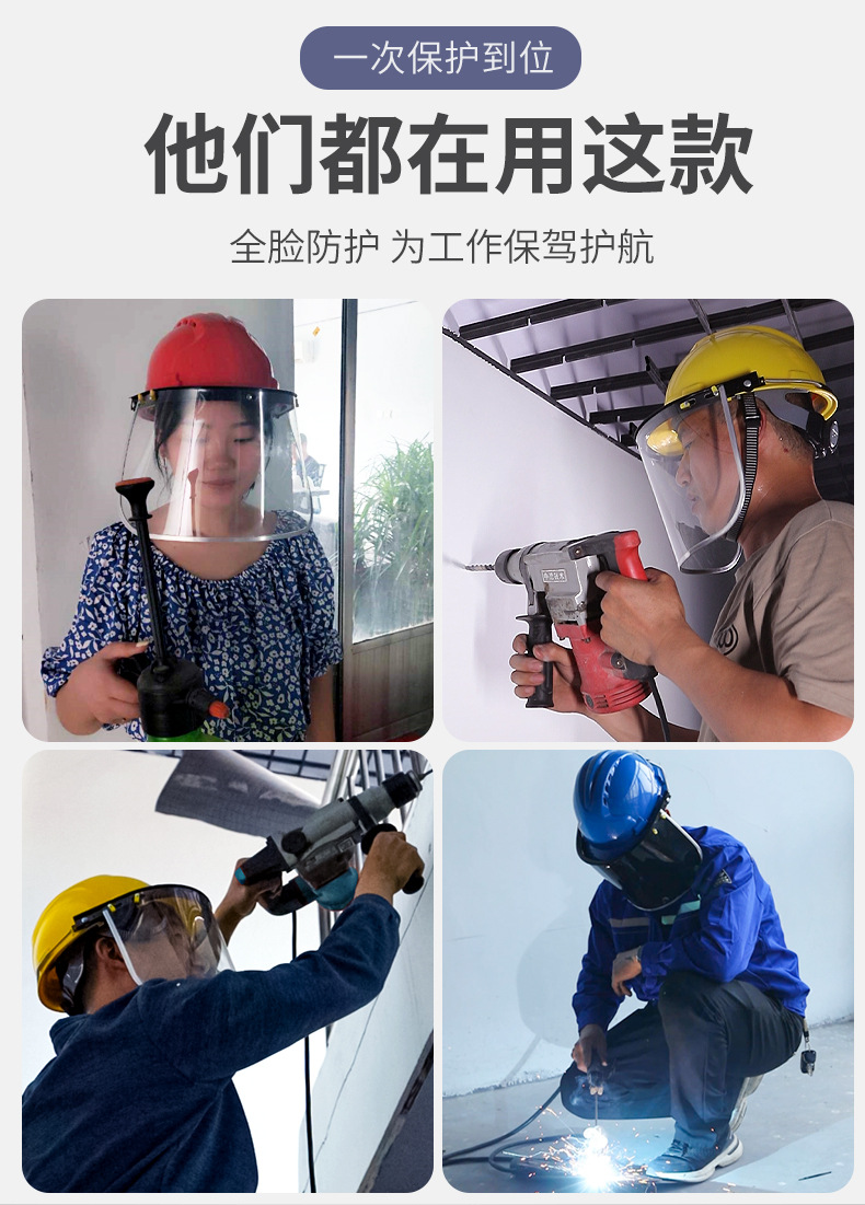 • 흰색 안전 헬멧 + 브래킷 + PVC 투명 스크린