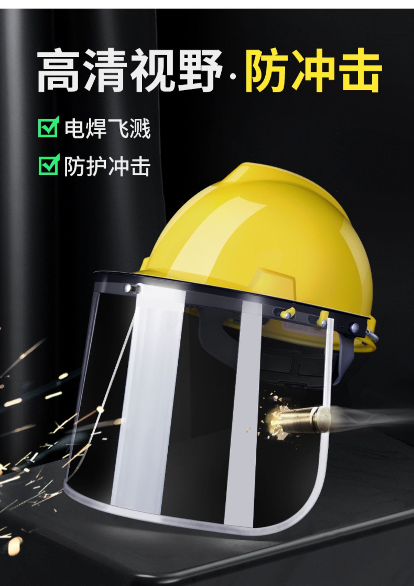 • 노란색 안전모 + 브래킷 + PC 투명 스크린 (1.5mm 두께 버전)