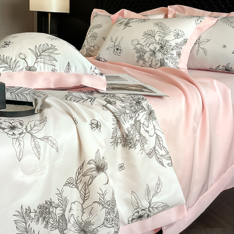 기계 세척 가능한 얼음 실크 여름 이불 세트 3 ~ 4 개의 여름 이불 얇은 이불 빛 고급 고급 고급 기숙사 단일 에어컨 이불 세트스토어 가기