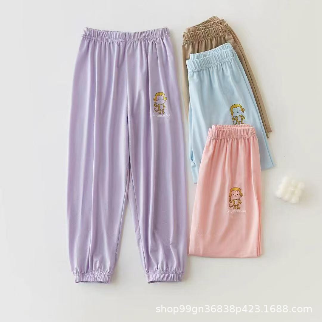 어린이 모기 방지 바지 아이스 실크 메쉬 빠른 건조 블루머스 소녀 바지 소년 스포츠 바지 여름 얇은 높은 허리스토어 가기