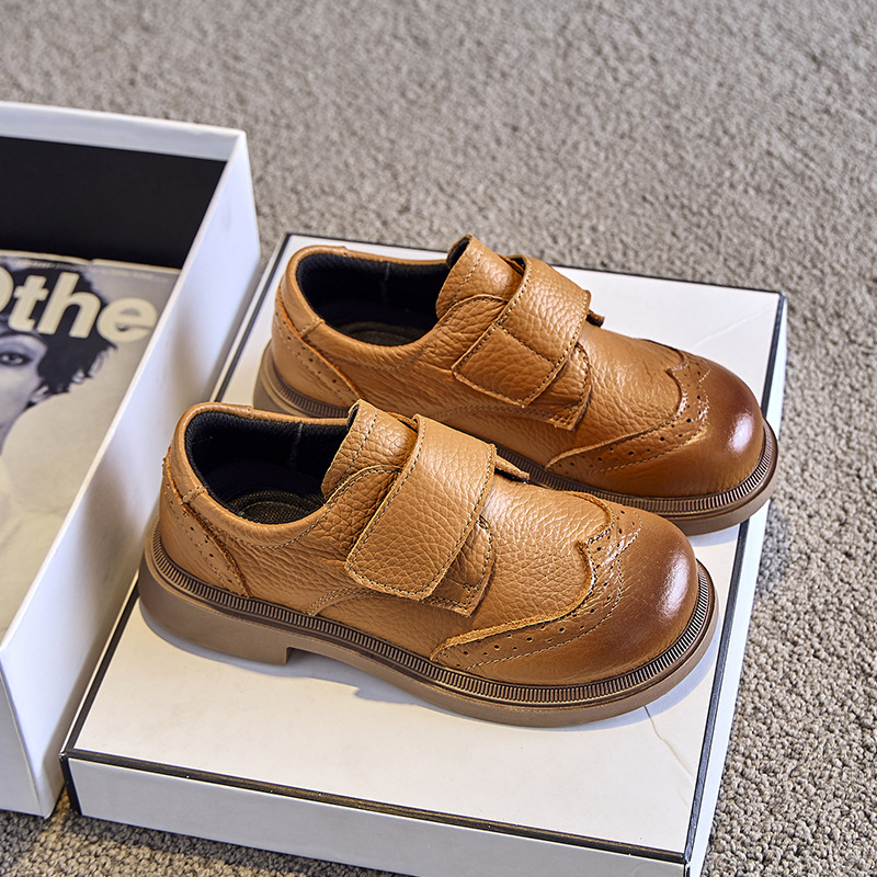 Cowhide 어린이 가죽 신발 학생 정품 가죽 검은 어린이 신발 아기 공연 소년 소녀 영국 신발 소프트 솔스토어 가기