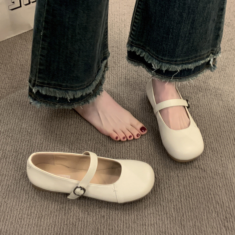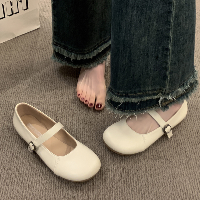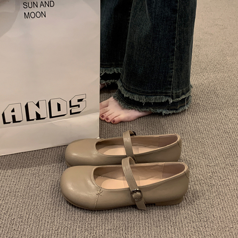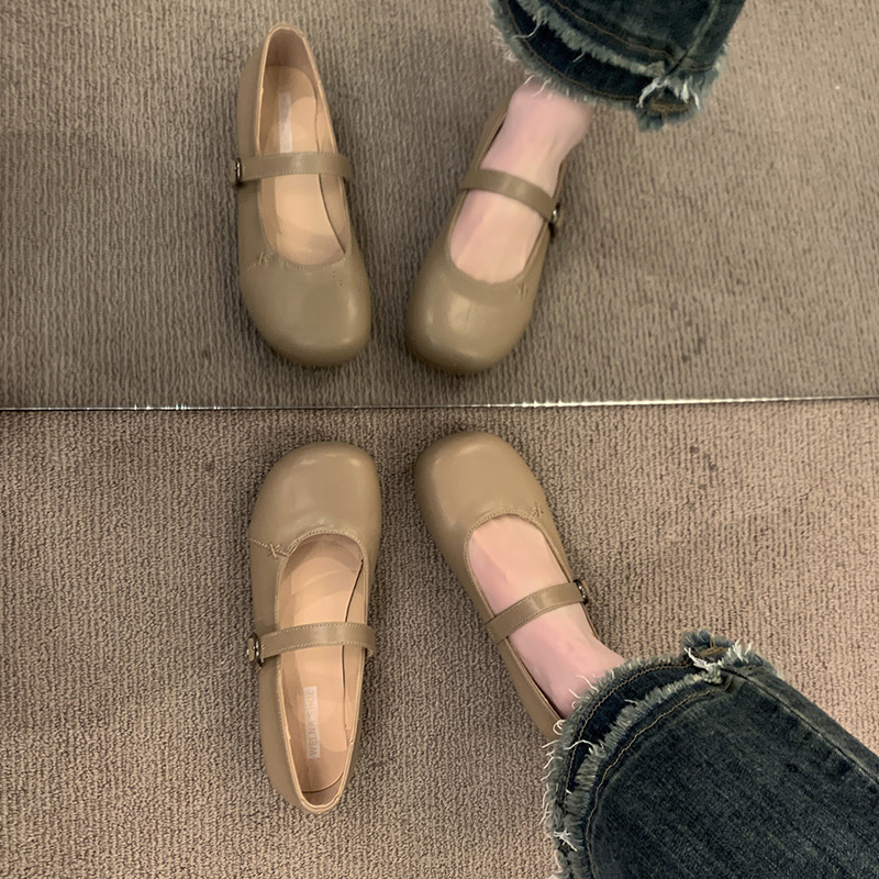 봄과 여름 얕은 입 메리 제인 신발 여성 부드러운 가죽 부드러운 바닥 2025 새로운 평면 신발 여름 작은 향기로운 스타일 콩 신발스토어 가기