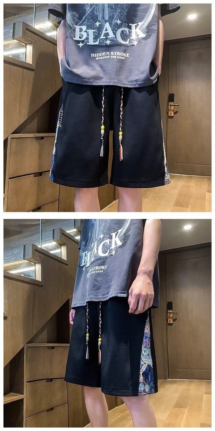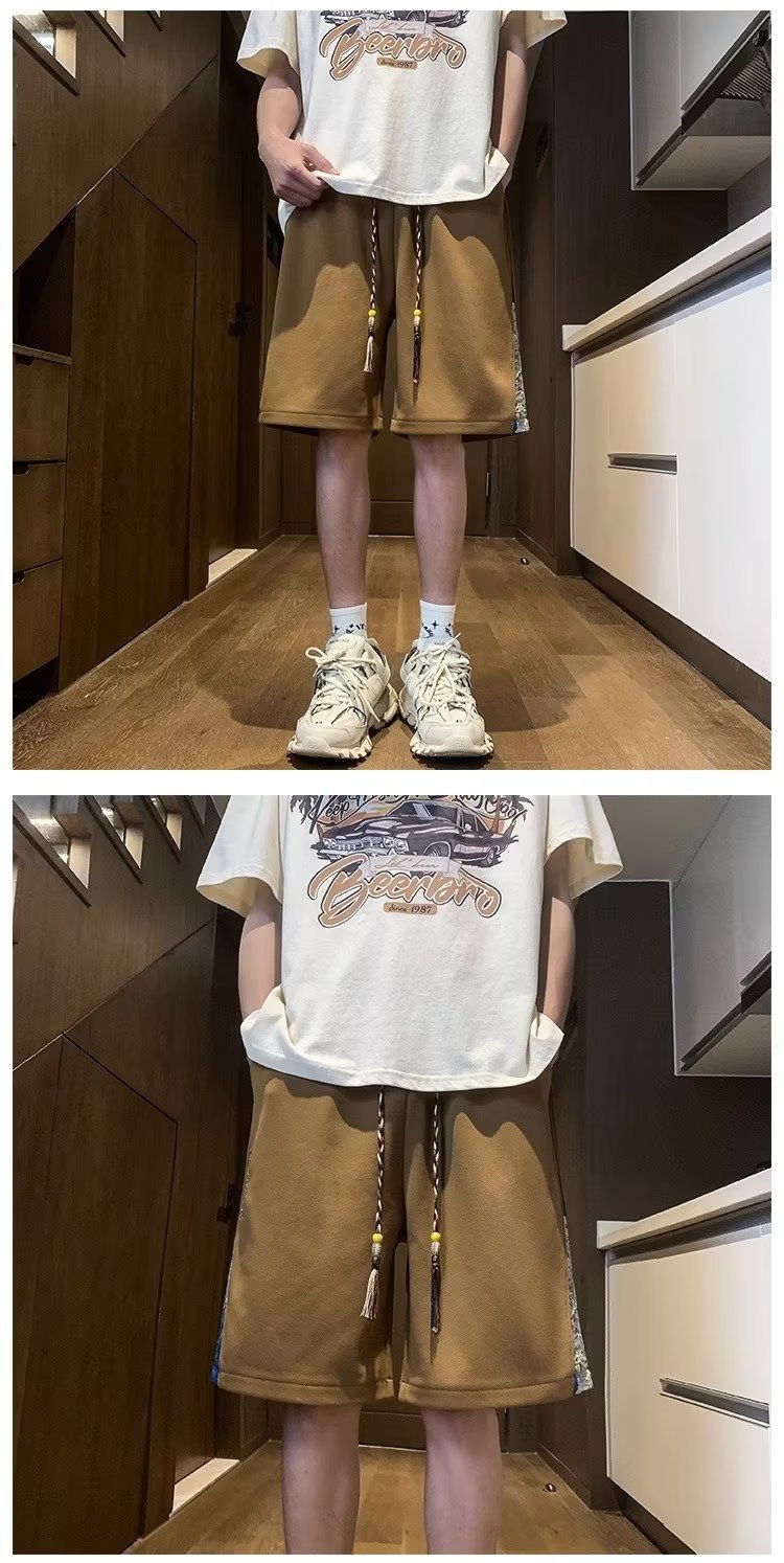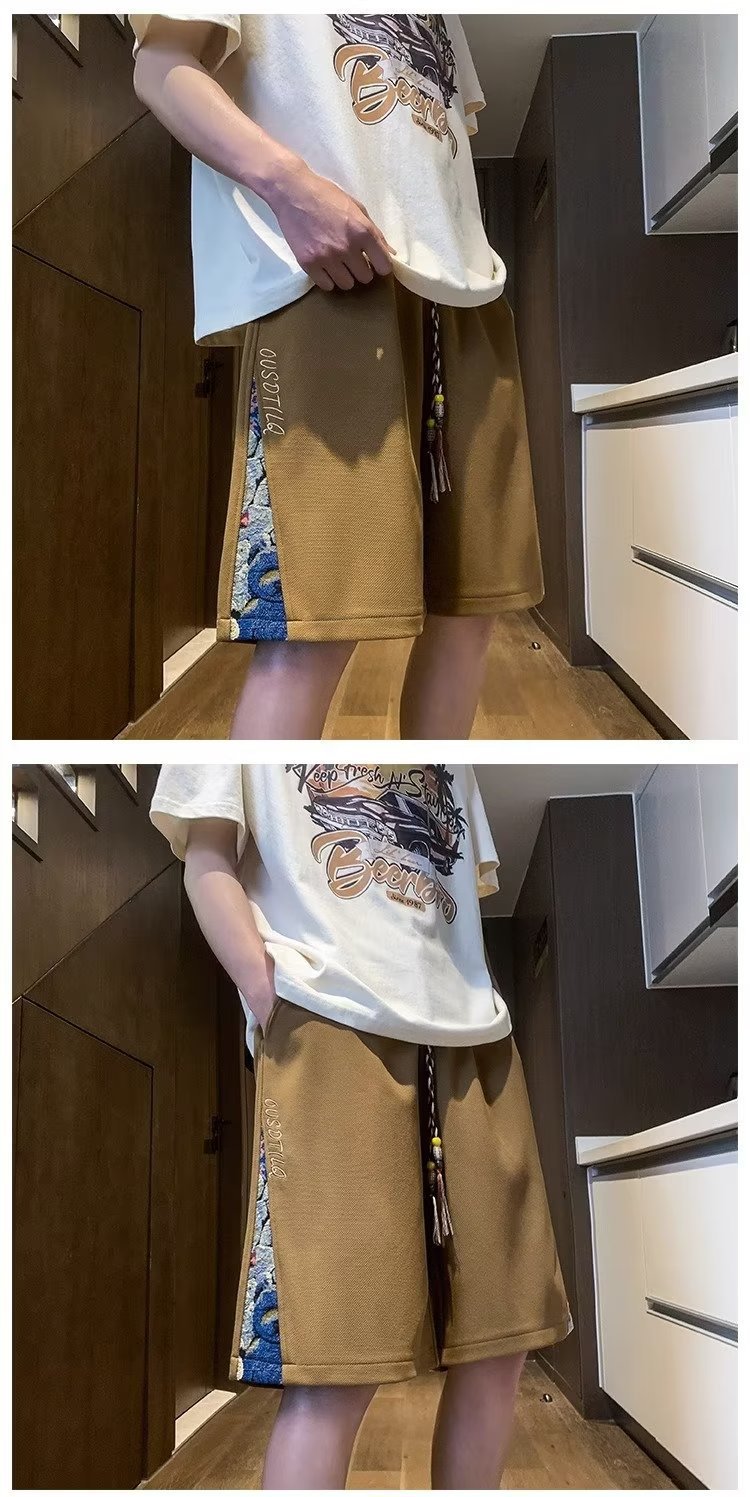 아메리칸 스타일 하이 스트리트 농구 스포츠 드로우 스트링 반바지 남자 여름 패션 브랜드 와플 스트레이트 루즈 반바지스토어 가기