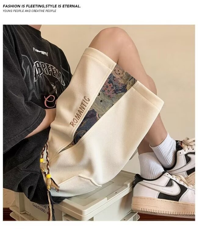 아메리칸 스타일 하이 스트리트 농구 스포츠 드로우 스트링 반바지 남자 여름 패션 브랜드 와플 스트레이트 루즈 반바지