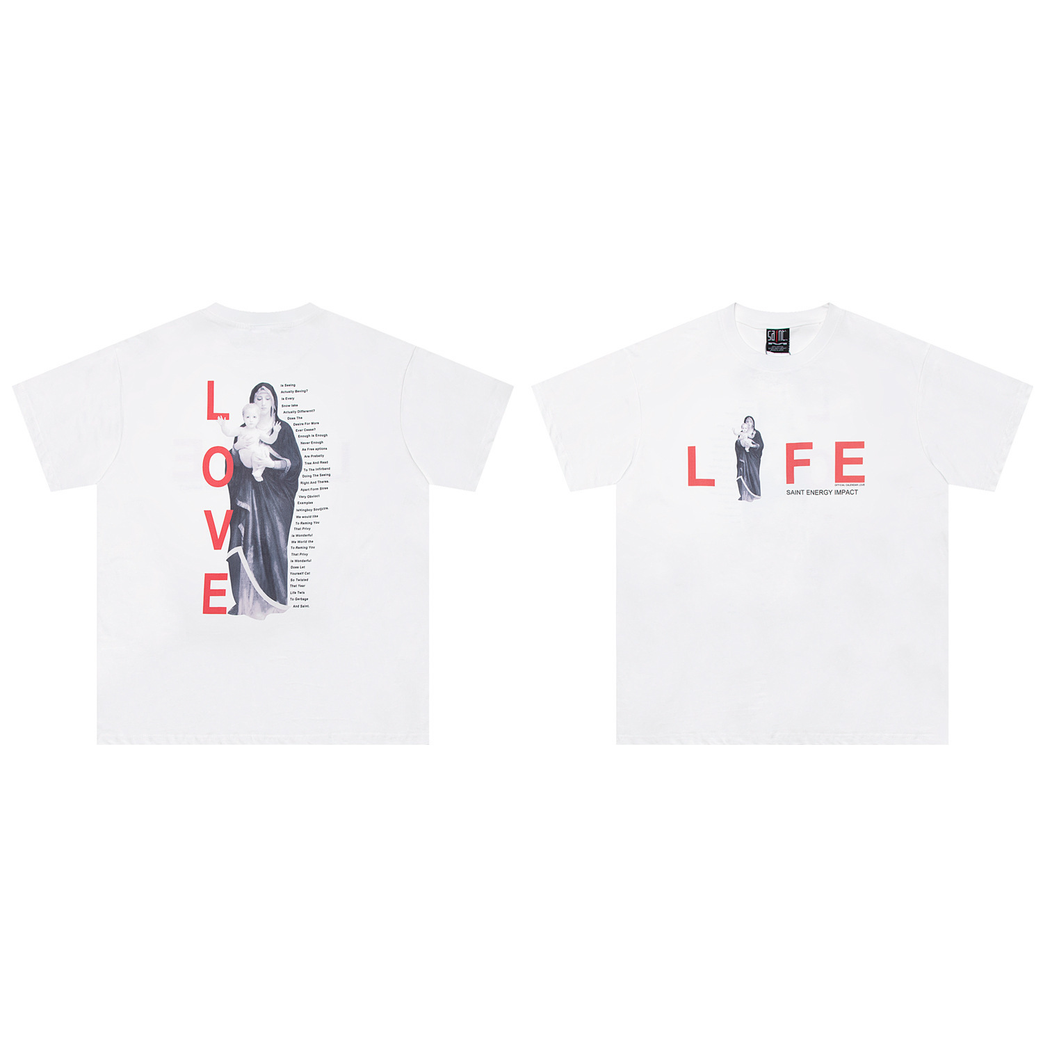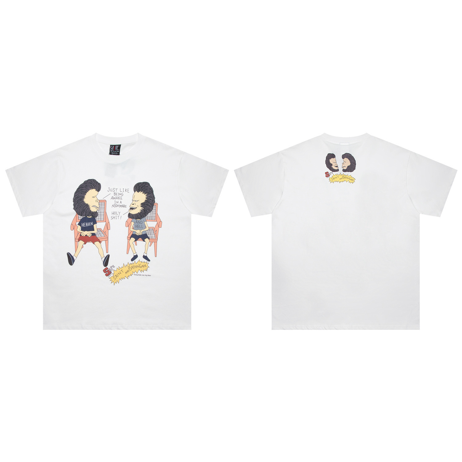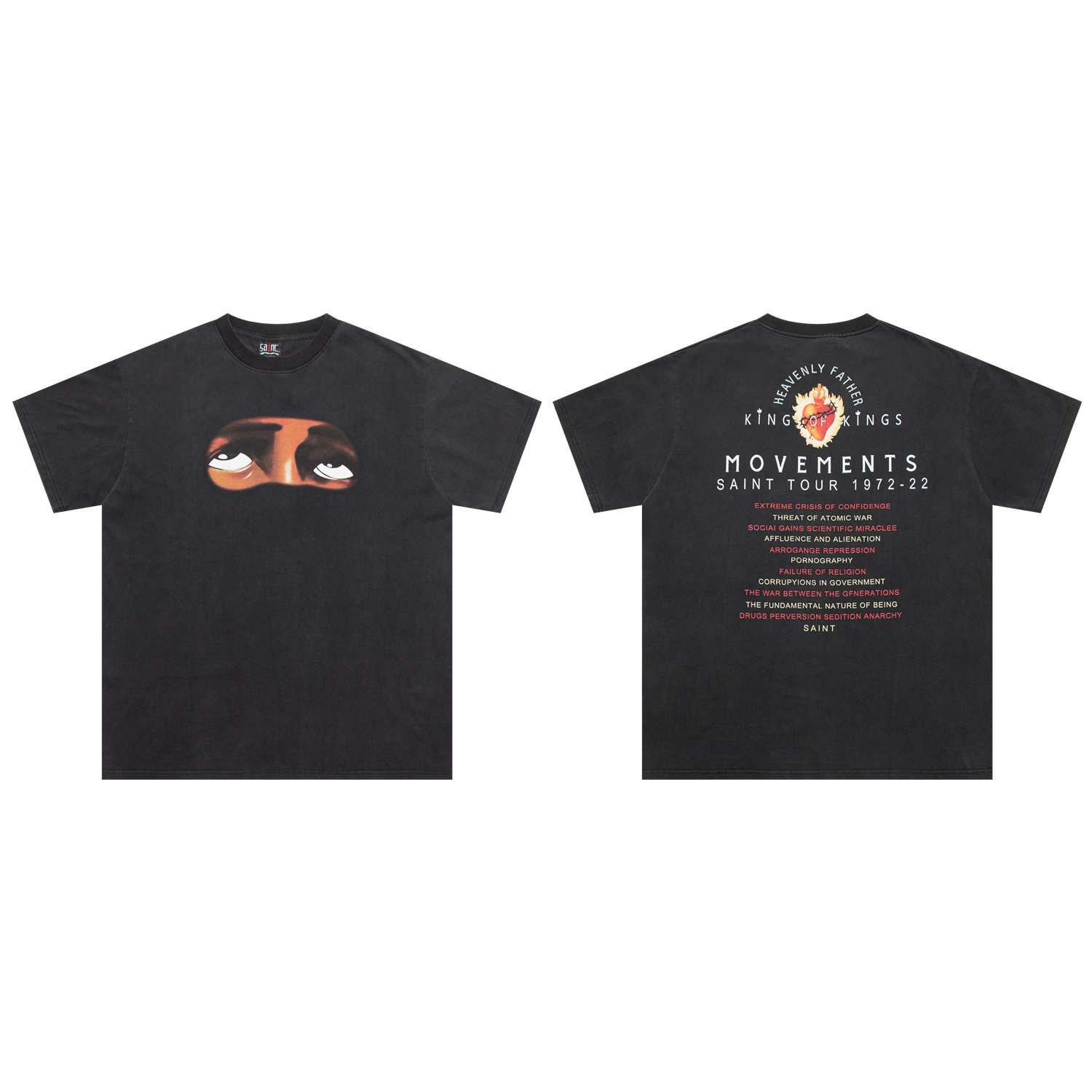 SAINT MICHAEL ICON 컬렉션 올드 워싱 레트로 라운드 넥 루즈 반팔 남성 및 여성 커플 티셔츠스토어 가기