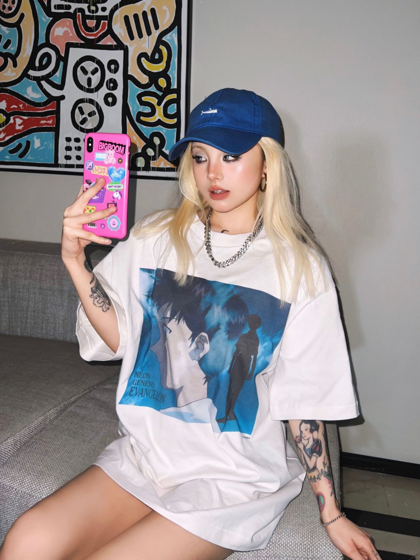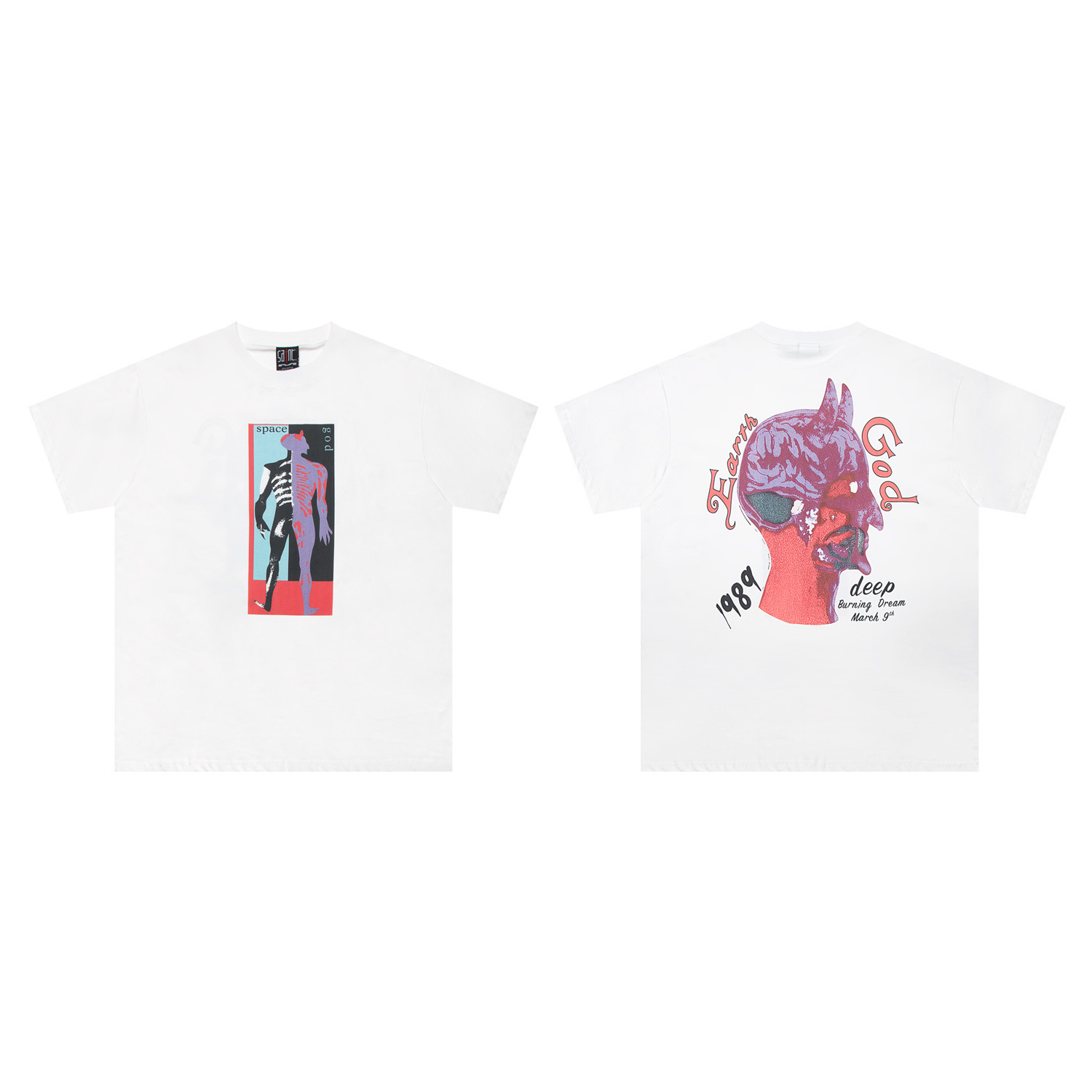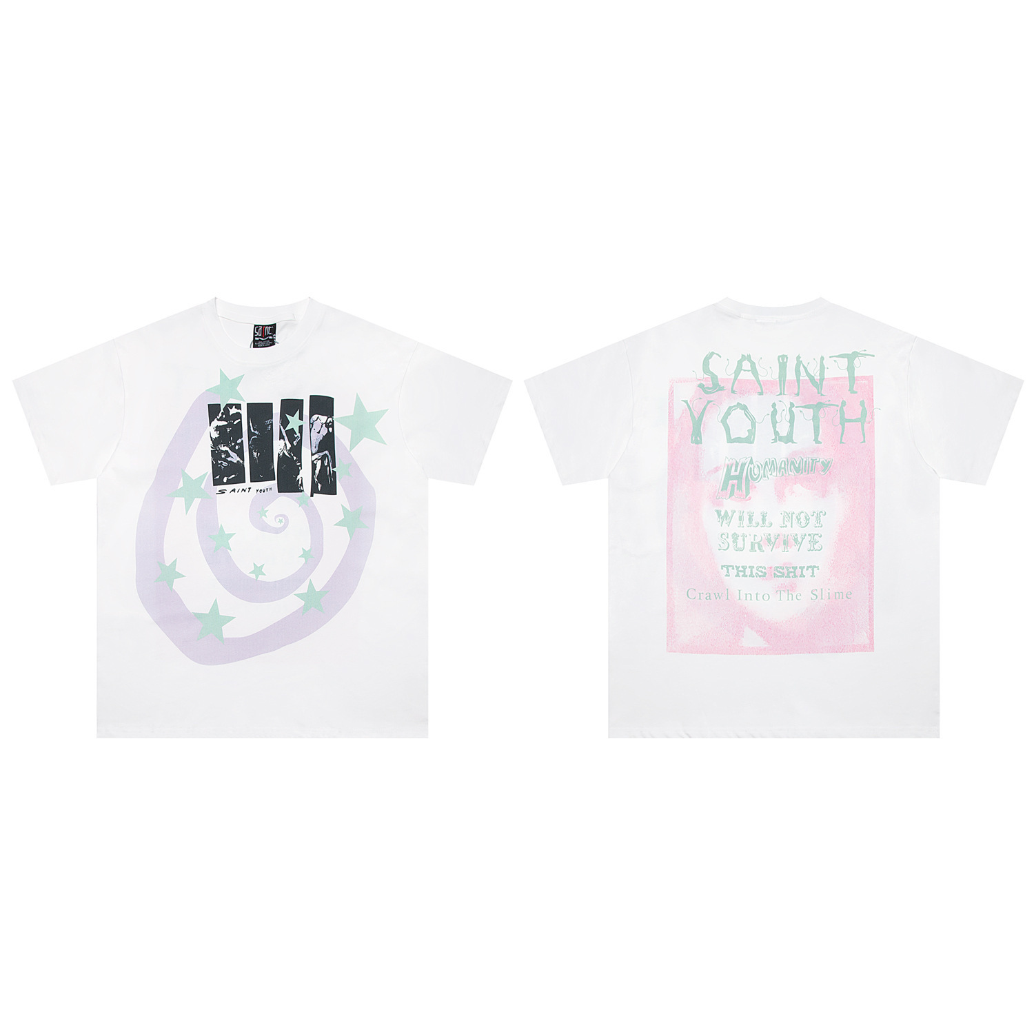 SAINT MICHAEL ICON 컬렉션 올드 워싱 레트로 라운드 넥 루즈 반팔 남성 및 여성 커플 티셔츠스토어 가기