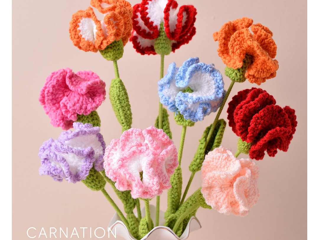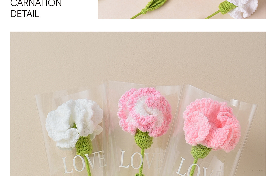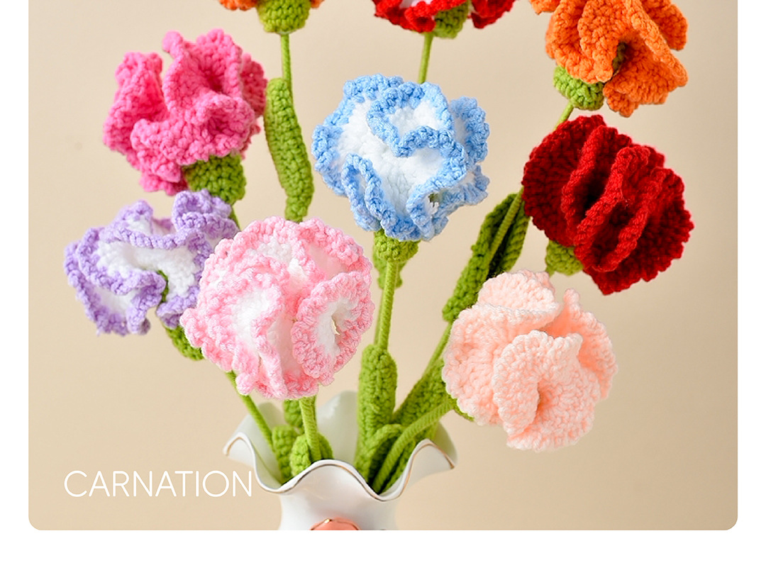 ✅완성 된 손으로 크로 셰 뜨개질 카네이션 꽃 어머니의 날 선물 가짜 꽃 수제 꽃 꽃다발