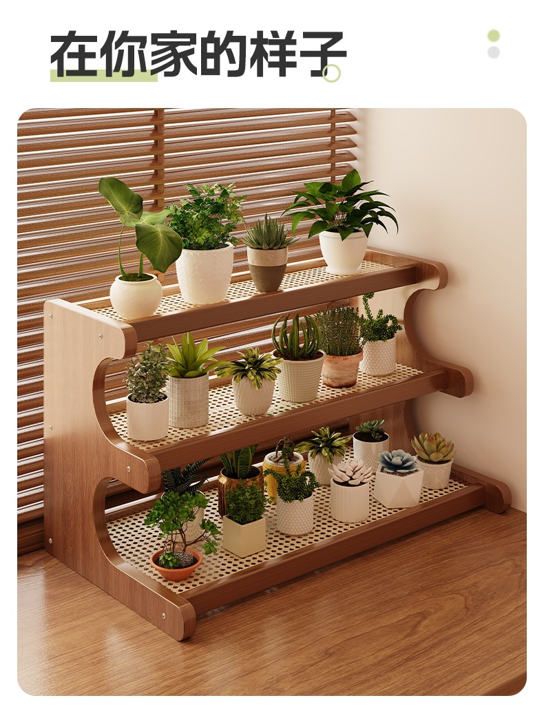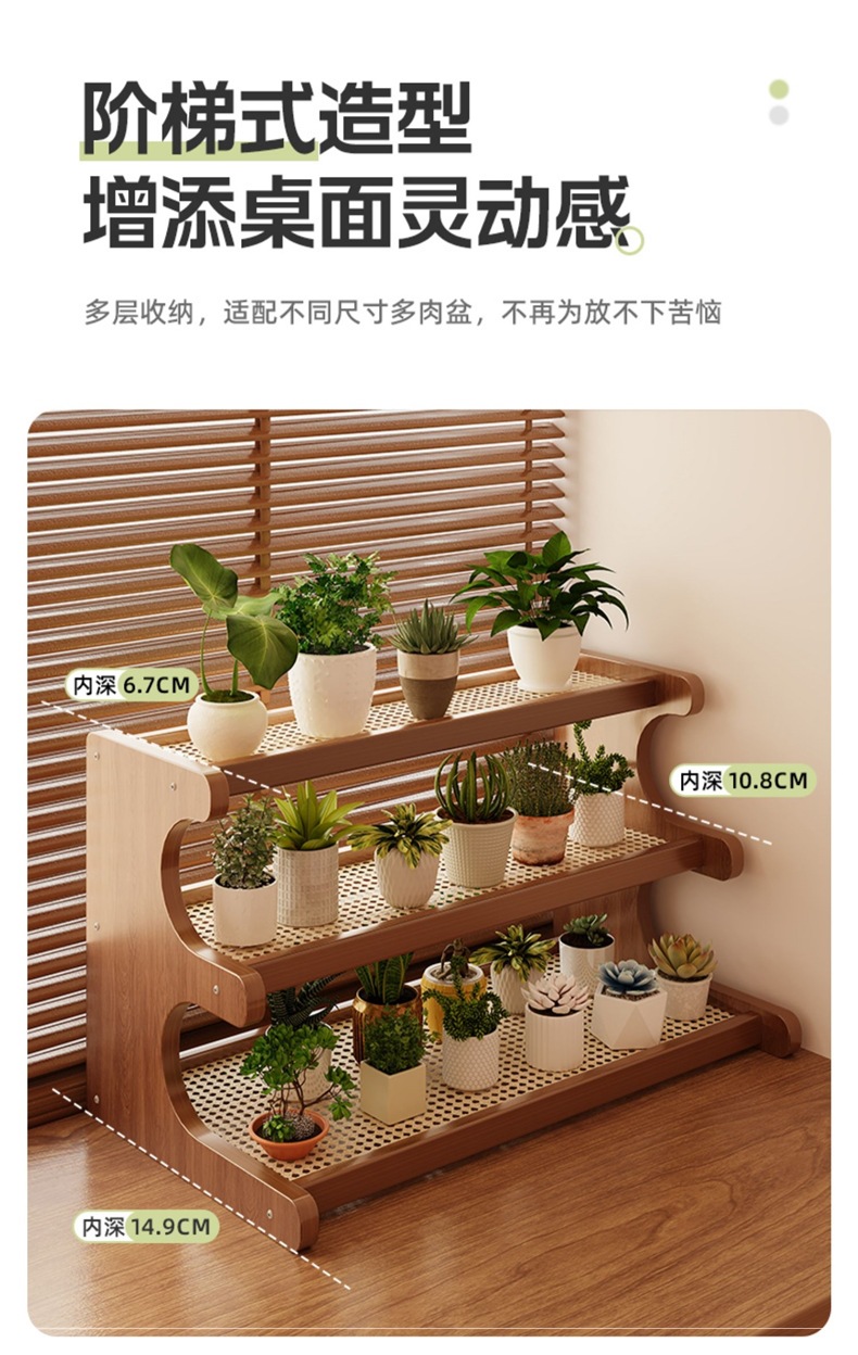 떠 다니는 창 다종 꽃 랙 2024 새로운 스타일 데스크탑 꽃 랙 솔리드 우드 멀티 레이어 스테핑 사다리꼴 저장 랙