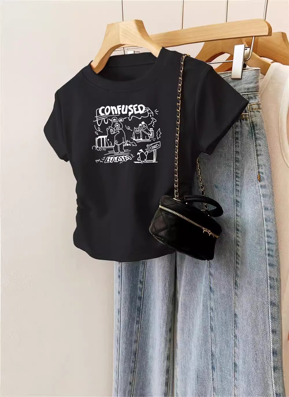 여자 플러스 사이즈 반팔 티셔츠 여자 여름 한국식 캐주얼 올매치 통통녀 살로 뒤덮인 슬리밍 쇼트탑스토어 가기