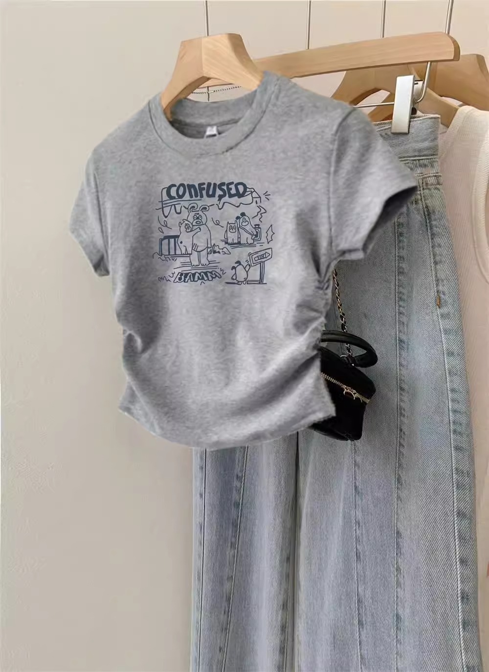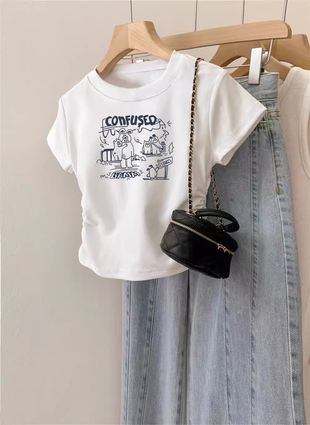 여자 플러스 사이즈 반팔 티셔츠 여자 여름 한국식 캐주얼 올매치 통통녀 살로 뒤덮인 슬리밍 쇼트탑