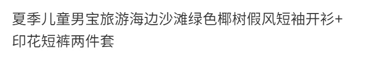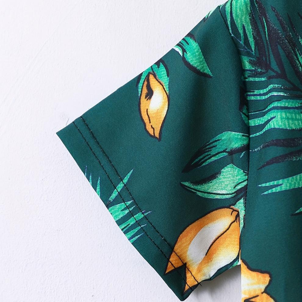 여름 어린이 남성 보물 여행 해변 녹색 코코넛 나무 가짜 스타일 반팔 카디건 인쇄 반바지 투피스 세트스토어 가기