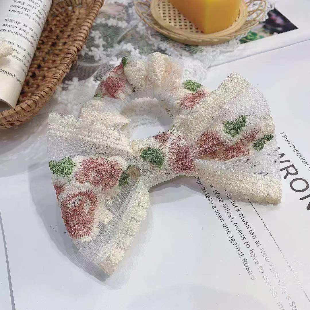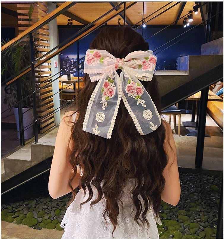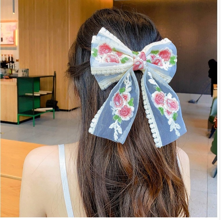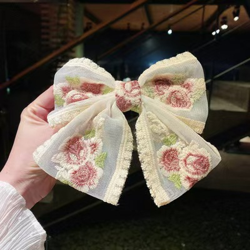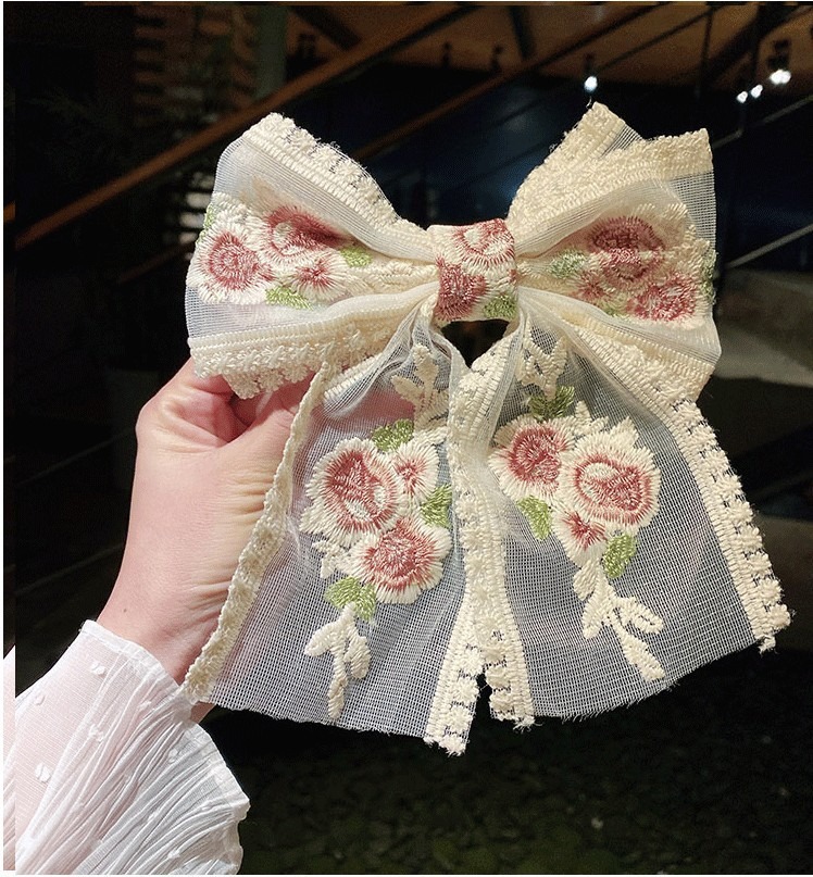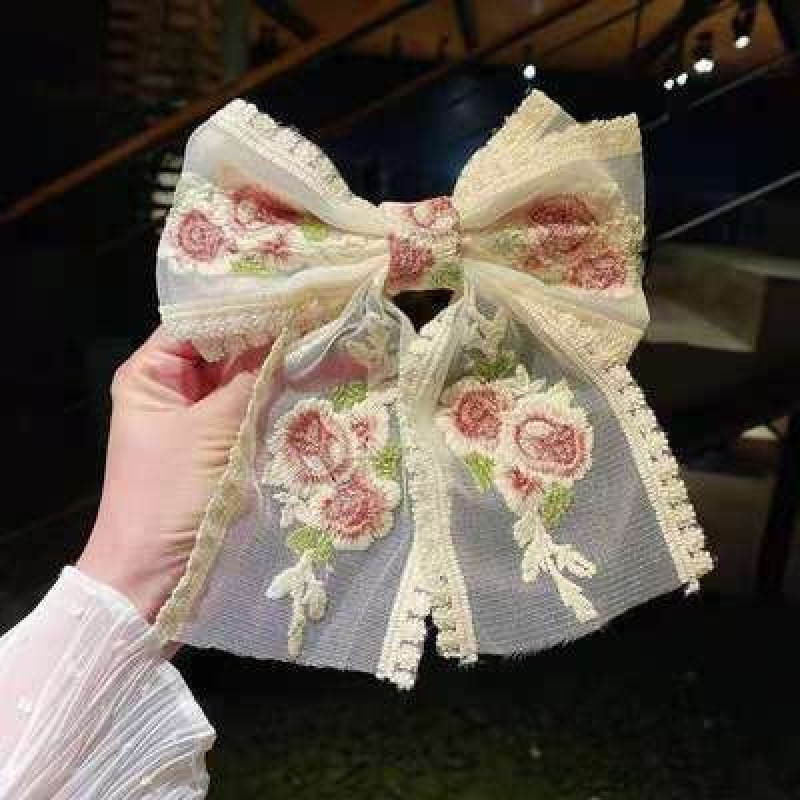 레이스 큰 활 머리핀 무거운 자수 슈퍼 요정 꽃 활 헤어 액세서리 2025 새로운 머리 도매 여성스토어 가기
