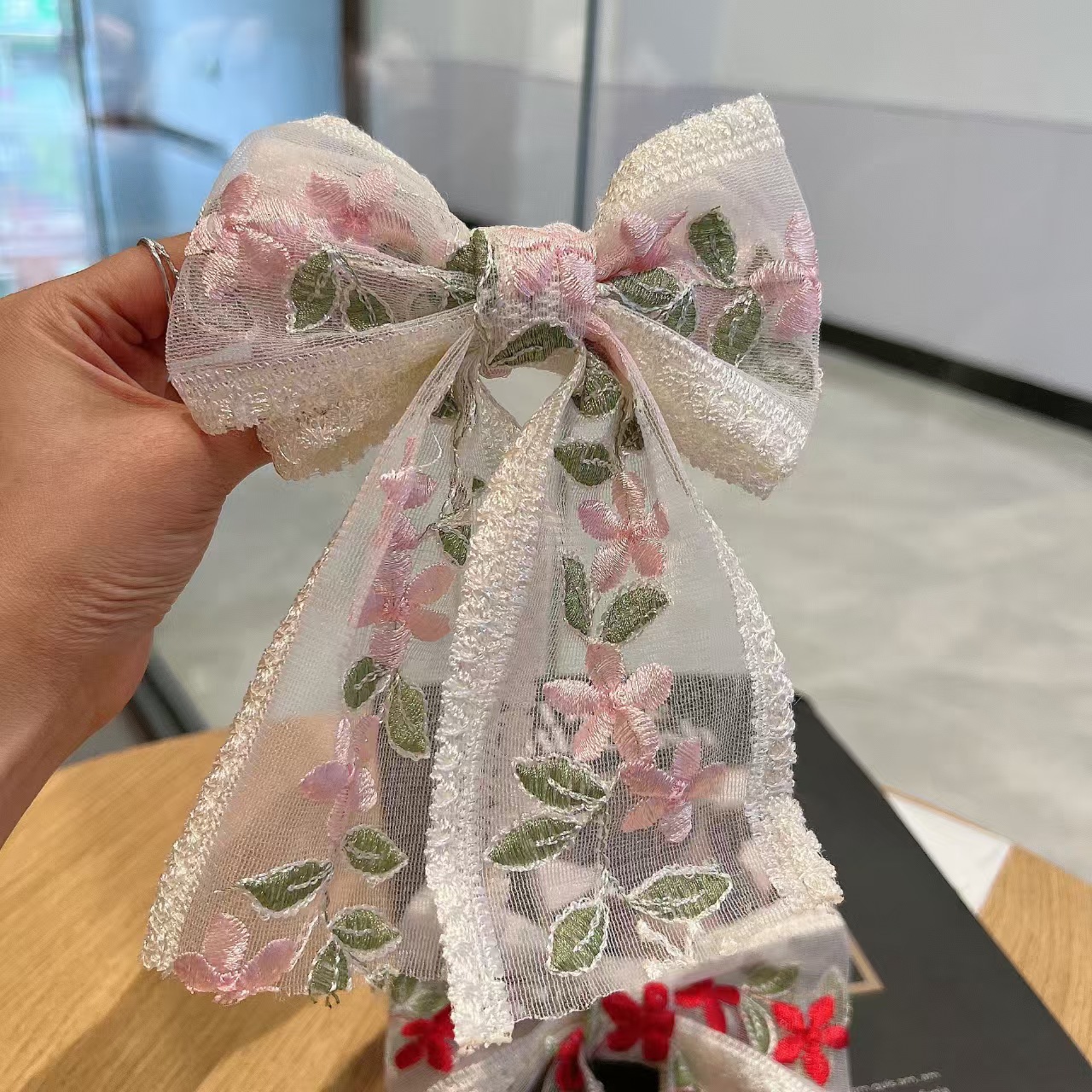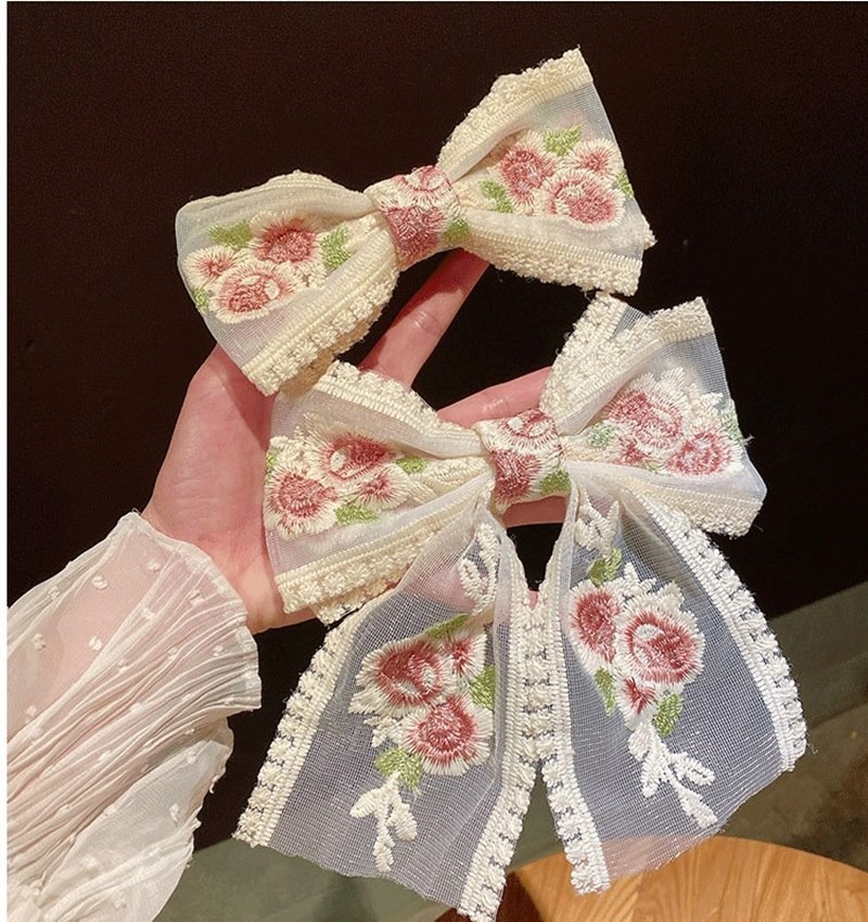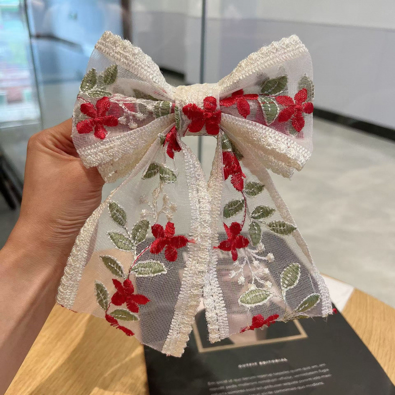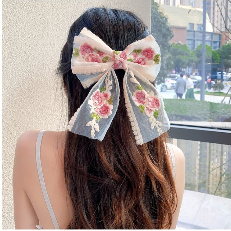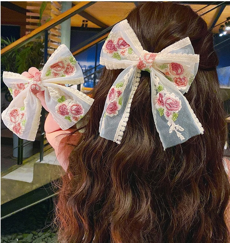 레이스 큰 활 머리핀 무거운 자수 슈퍼 요정 꽃 활 헤어 액세서리 2025 새로운 머리 도매 여성스토어 가기