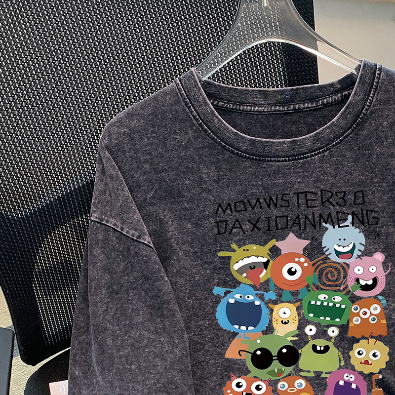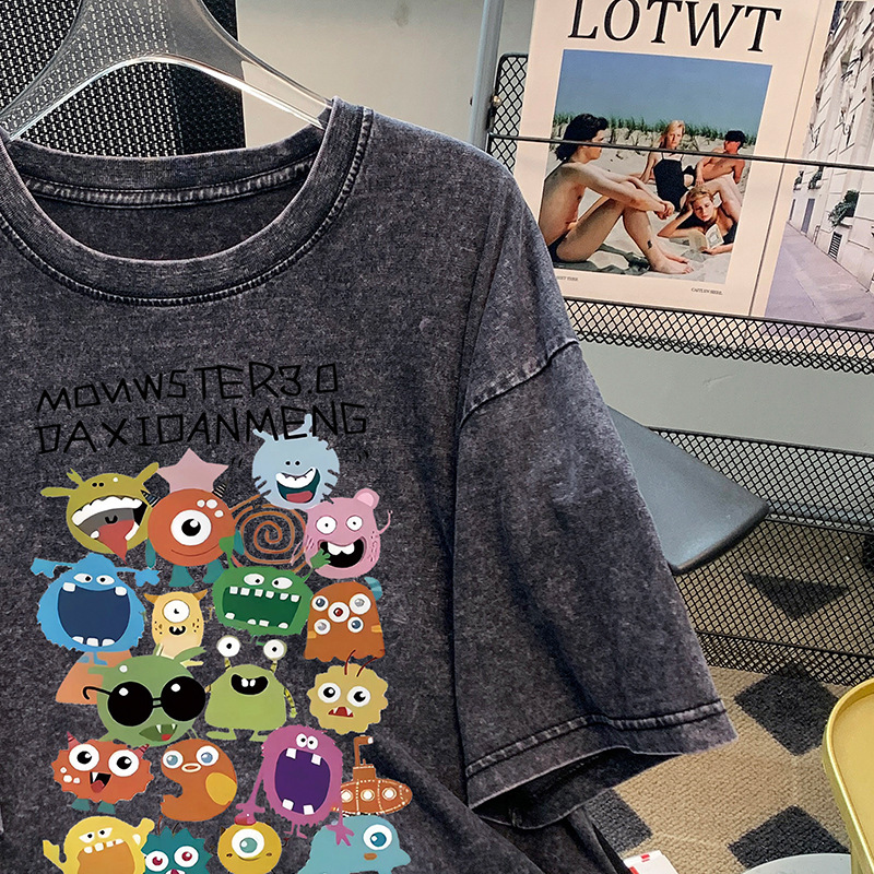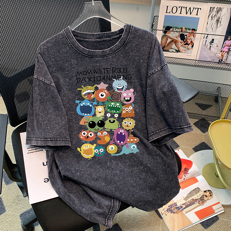 미국 빈티지 세탁 플러스 사이즈 유럽과 미국 반팔 티셔츠 여성용 여름 코튼 루즈 탑 중량급 반소매 티셔츠스토어 가기
