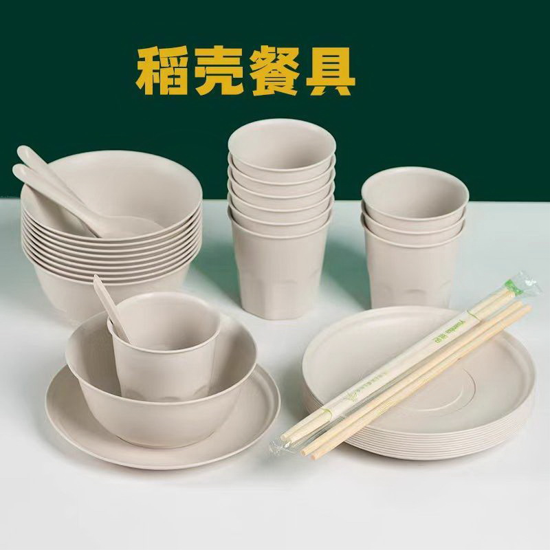 ✅쌀 껍질 식기 일회용 그릇 편리한 두꺼운 케이터링 그릇 젓가락 접시 컵 가정용 조합 패키지를 낮출 수 있습니다스토어 가기