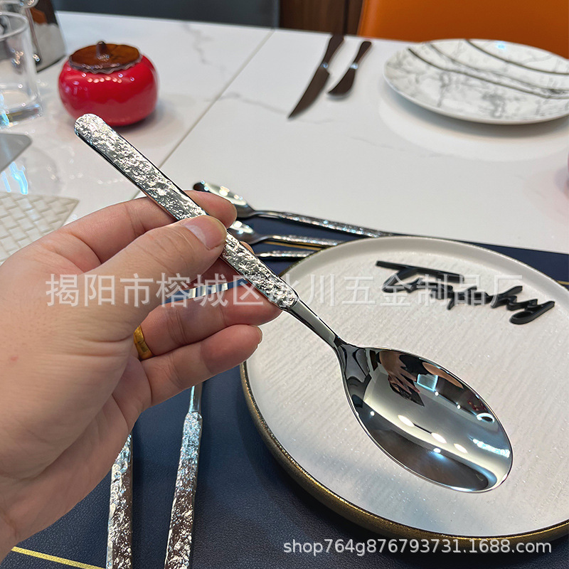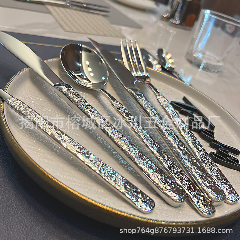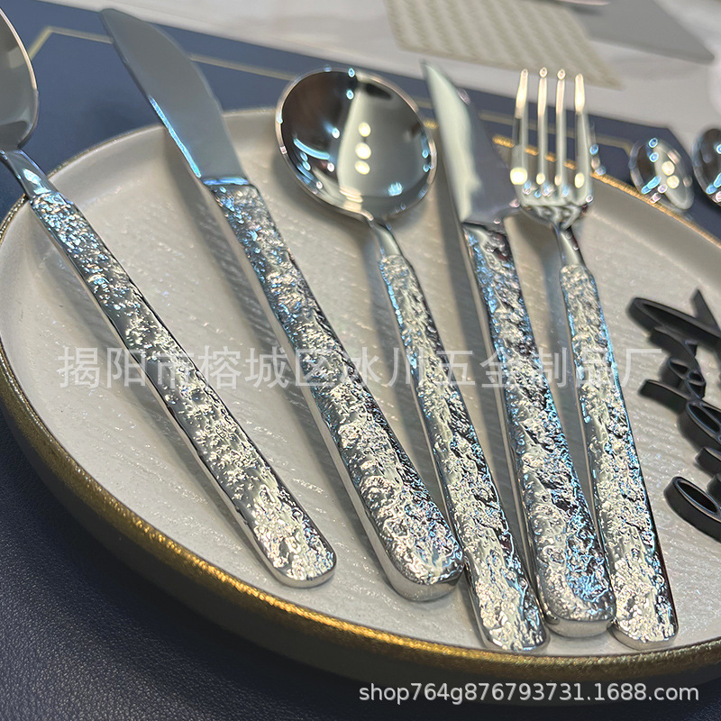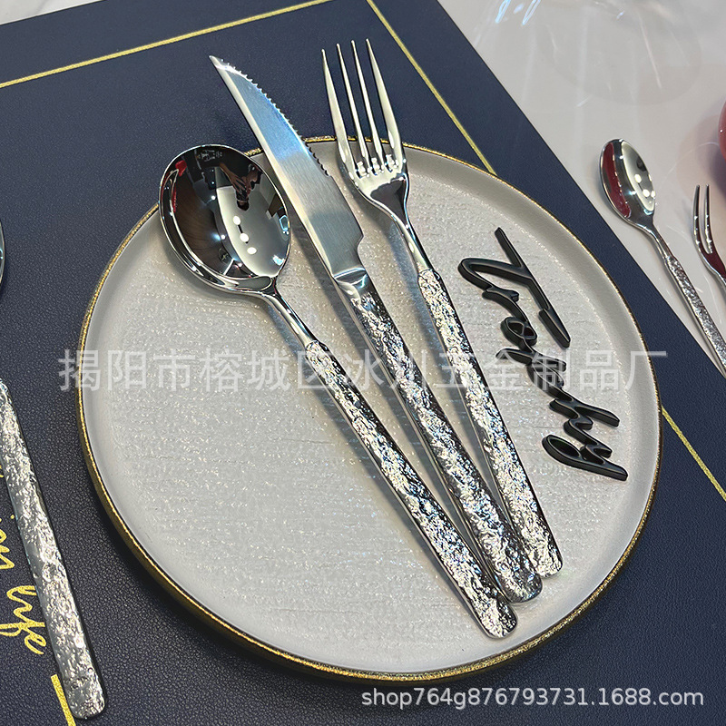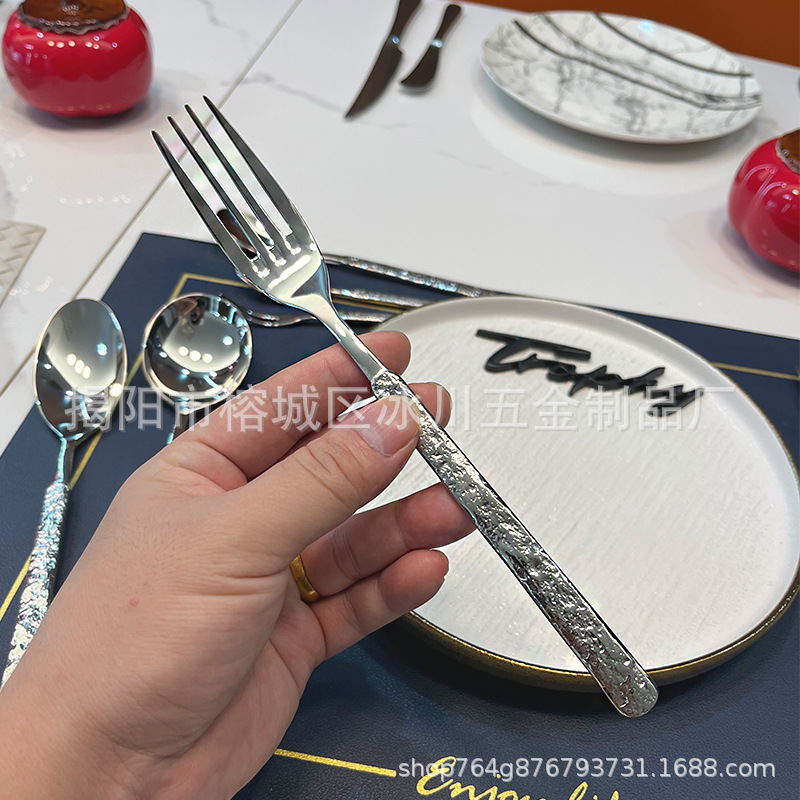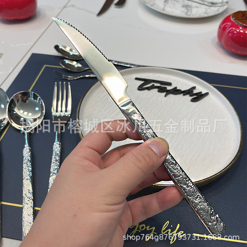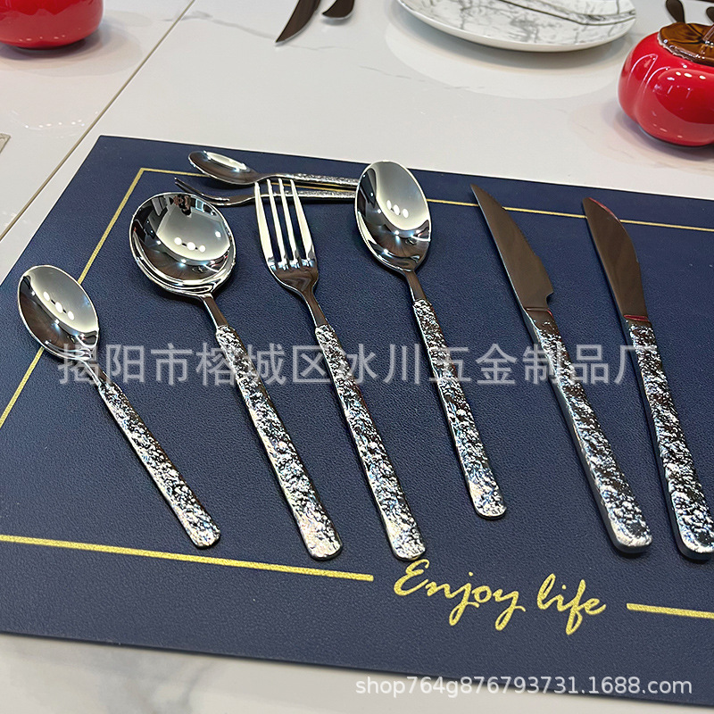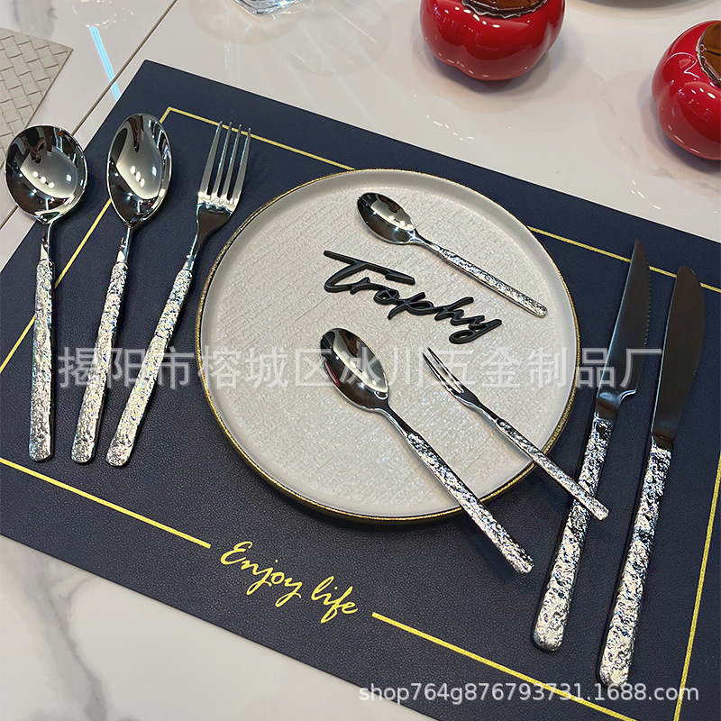✅[가벼운 럭셔리 록 패턴] 식기 나이프와 포크 투피스 칼, 포크 및 스푼 스테이크 스테인레스 스틸 서양식 가정용 유럽 럭셔리스토어 가기