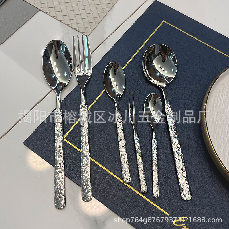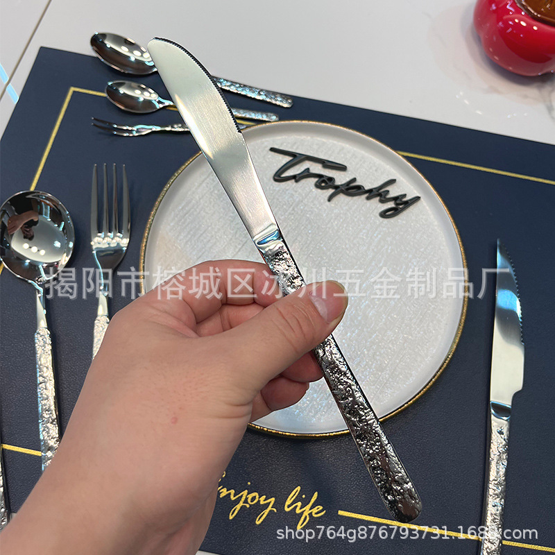 ✅[가벼운 럭셔리 록 패턴] 식기 나이프와 포크 투피스 칼, 포크 및 스푼 스테이크 스테인레스 스틸 서양식 가정용 유럽 럭셔리