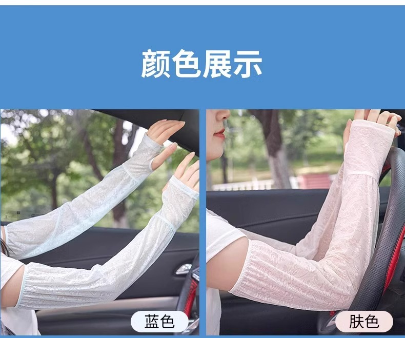 레이스 태양 보호 아이스 슬리브 여성의 여름 UV 보호 얇은 야외 사이클링 느슨한 소매 아이스 실크 통기성