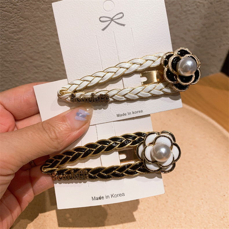 한국 동대문 동백머리 머리 머리 심플 스타일 우아한 꽃 Bb 클립 가죽 부러진 머리 머리띠 올매치