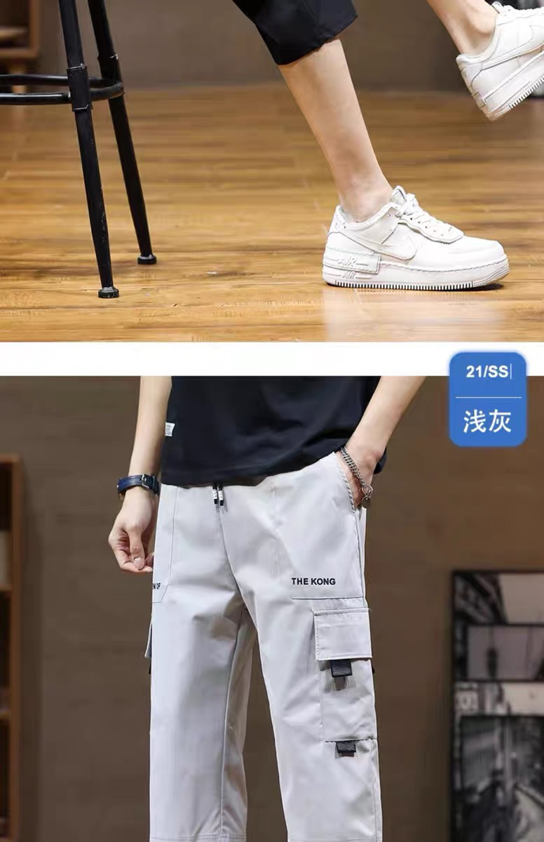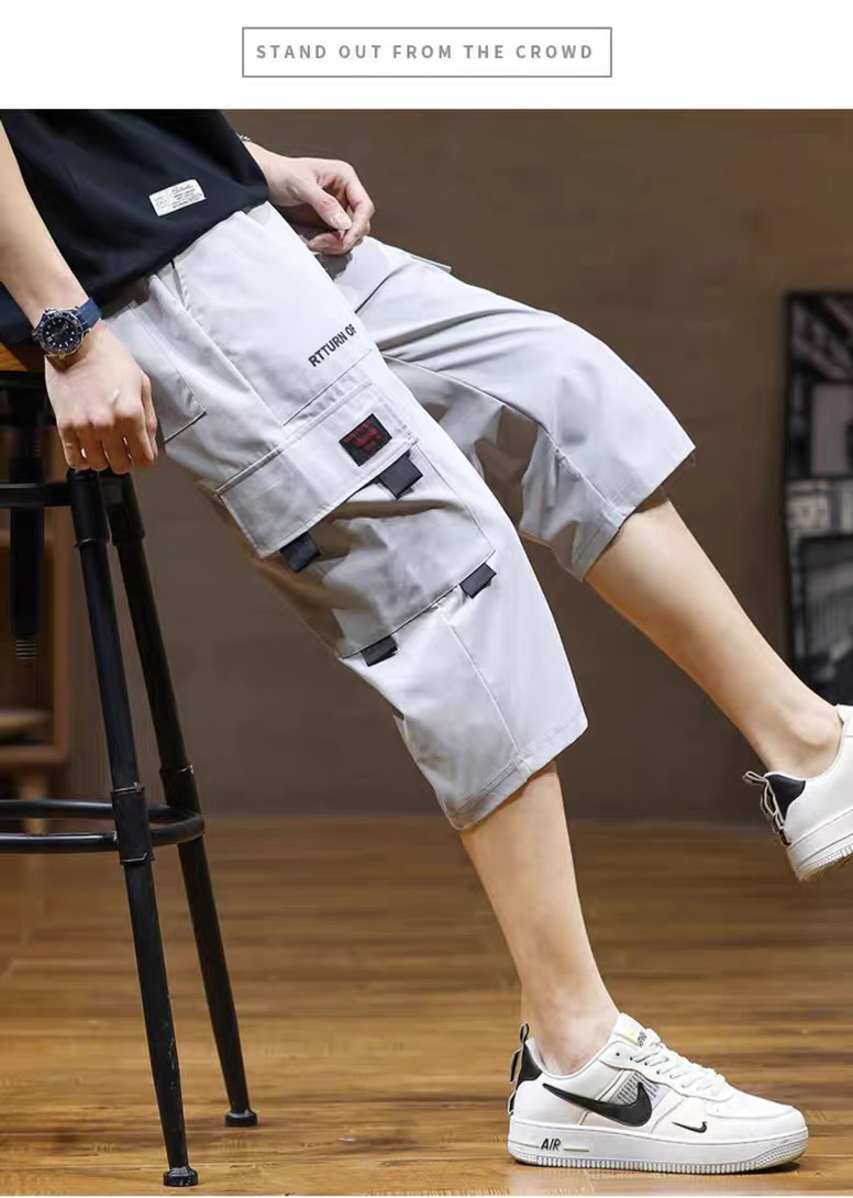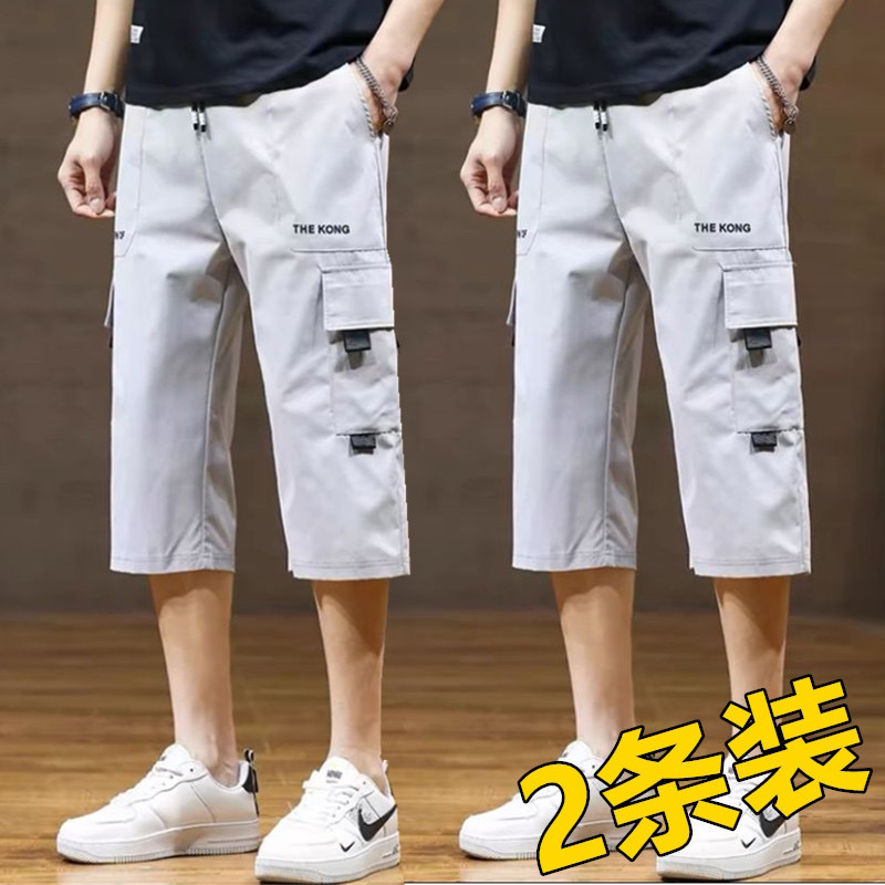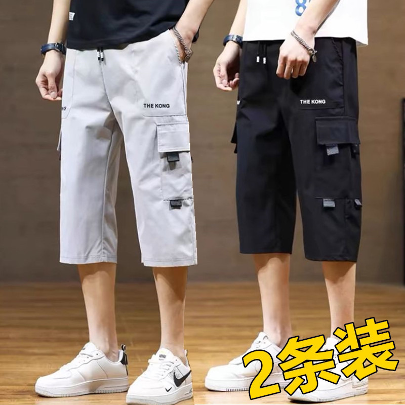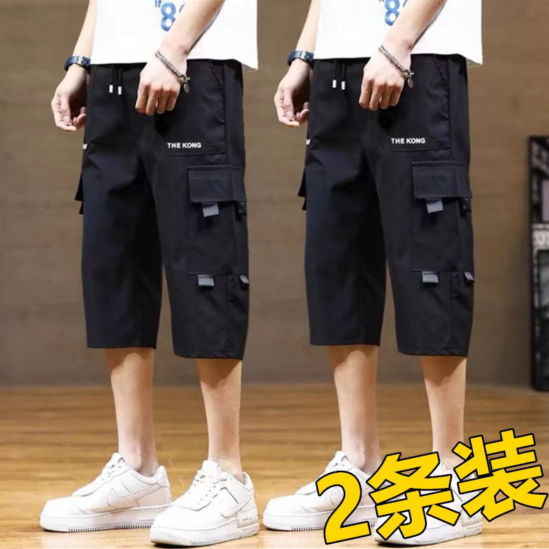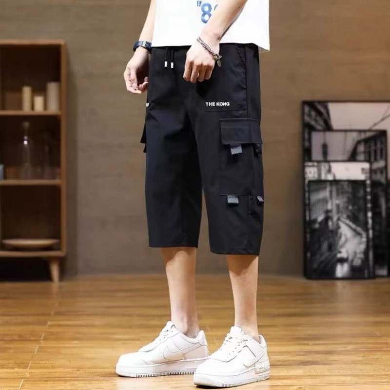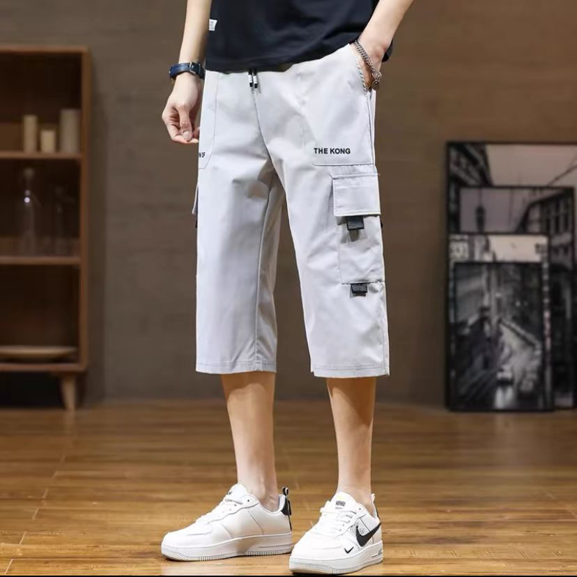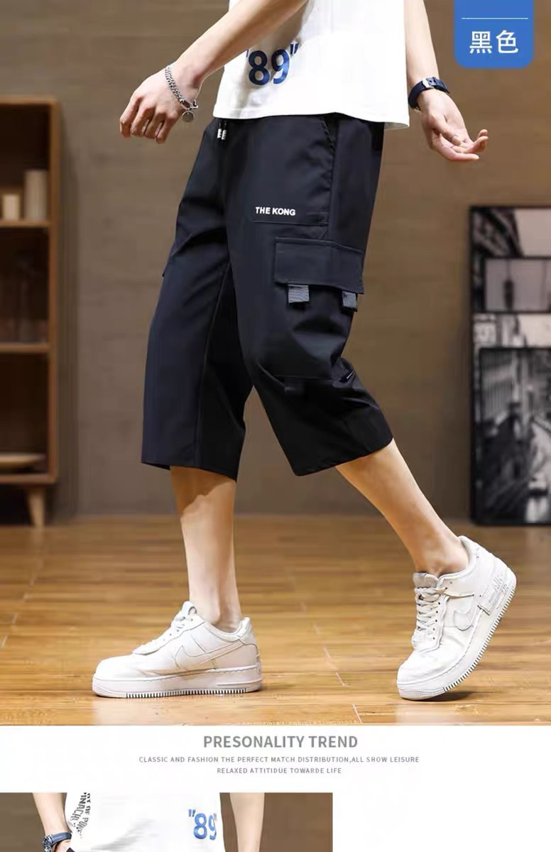 자른 바지 여름 얇은 유행 작업복 반바지 남자 중간 바지 느슨한 바지 아이스 실크 소년 스포츠 캐주얼 남성