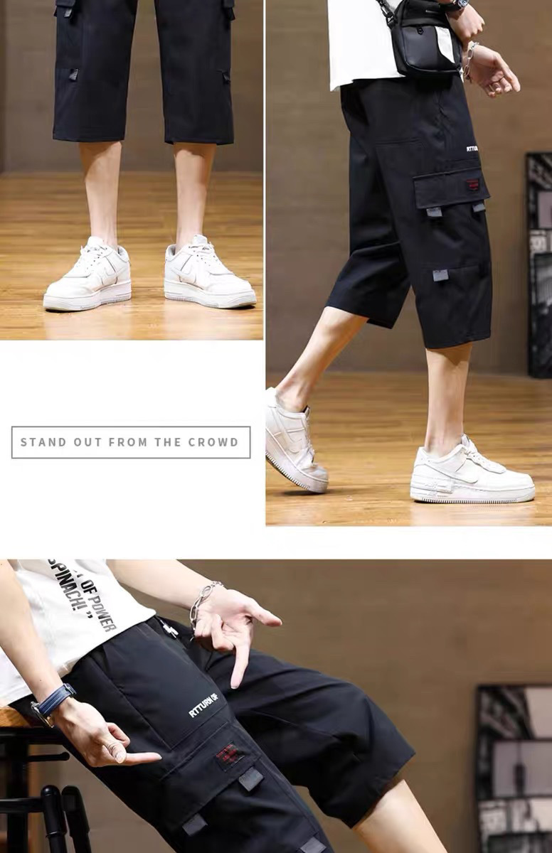 자른 바지 여름 얇은 유행 작업복 반바지 남자 중간 바지 느슨한 바지 아이스 실크 소년 스포츠 캐주얼 남성스토어 가기