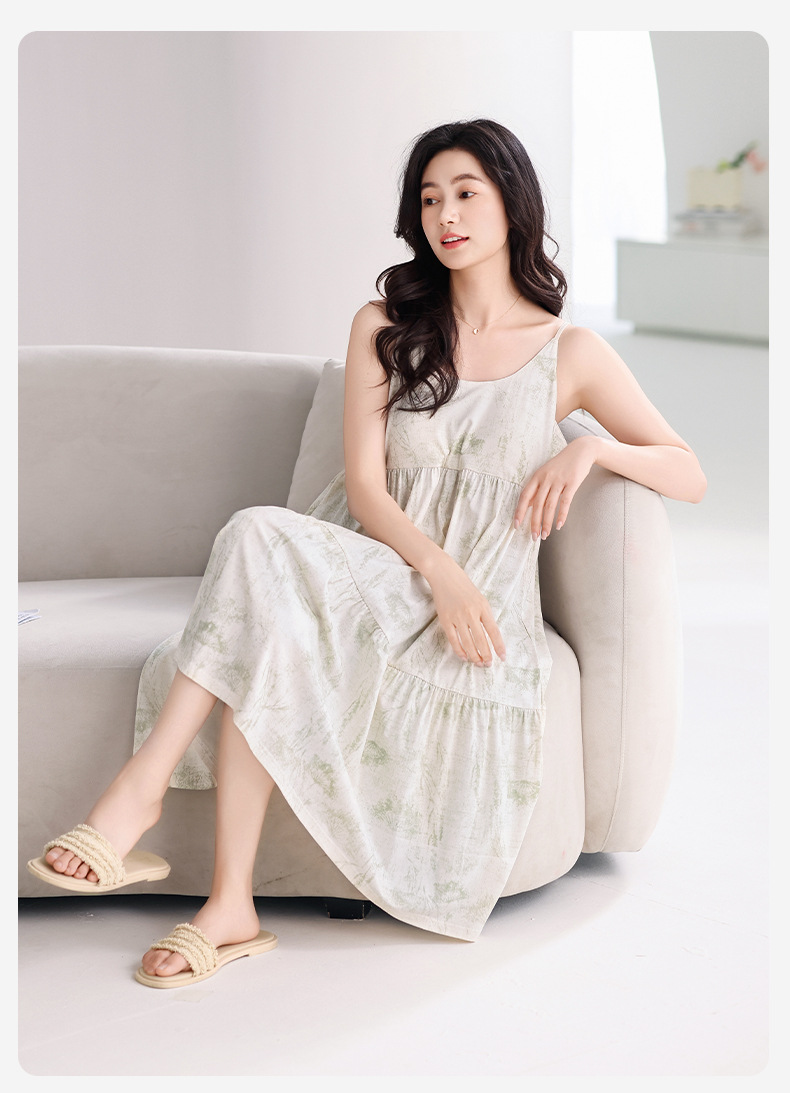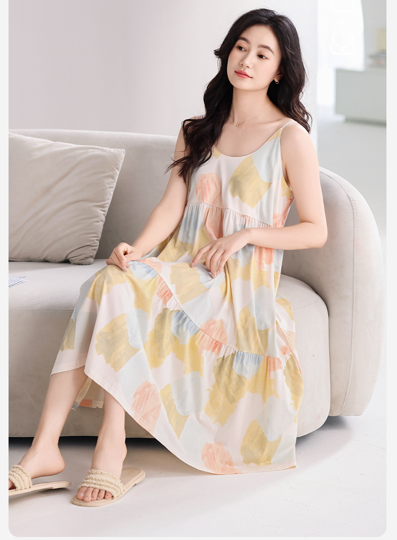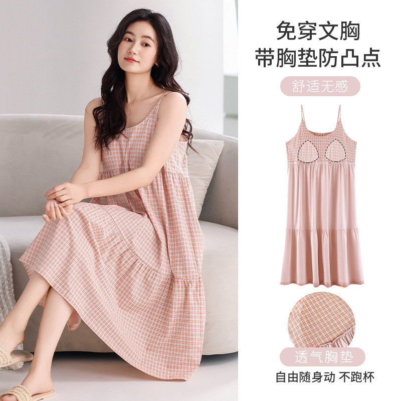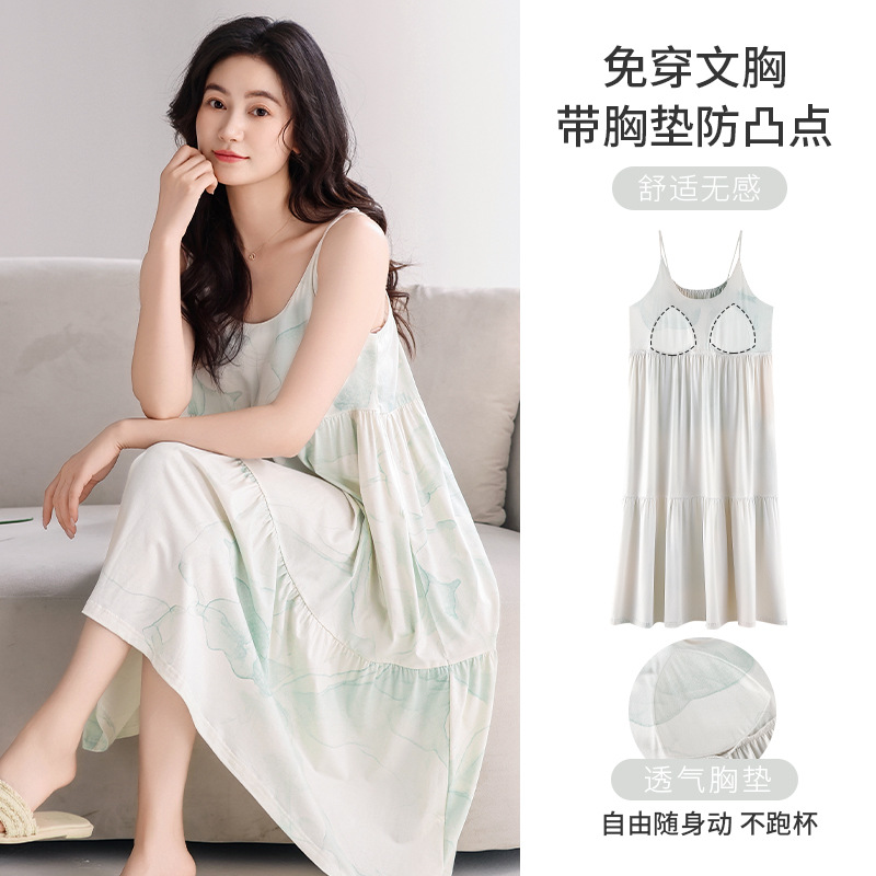 여성용 슬링 나이트 가운 여름면 섹시한 여름 얇은 원피스 2025 와 가슴 패드 새로운 스타일 잠옷 홈 옷스토어 가기