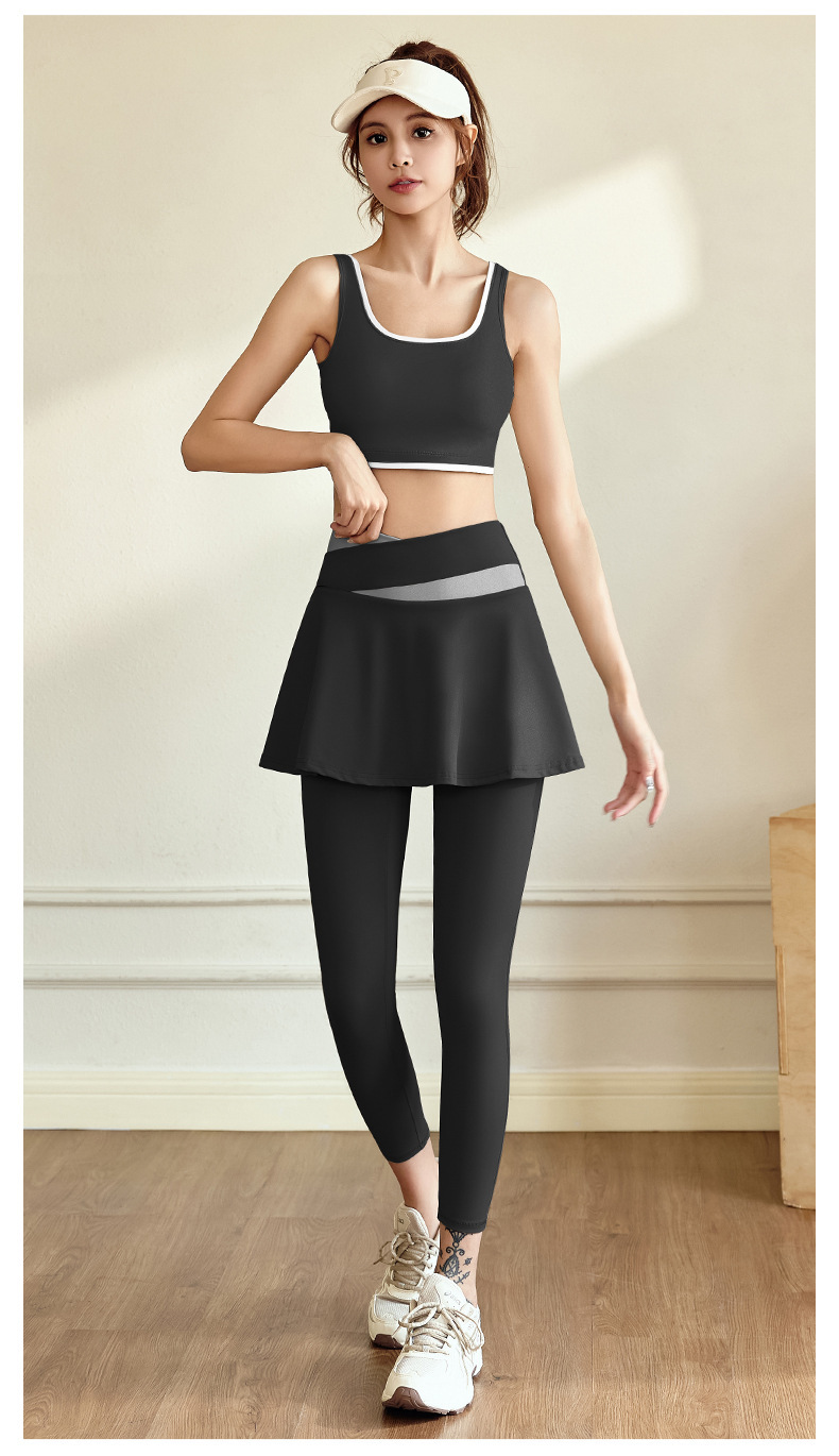 Juyitang 여성용 고탄성 알몸 피트니스 세트 추적없는 달리기 통기성 스포츠 세트 민소매 요가 옷