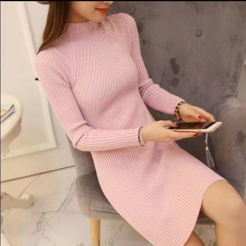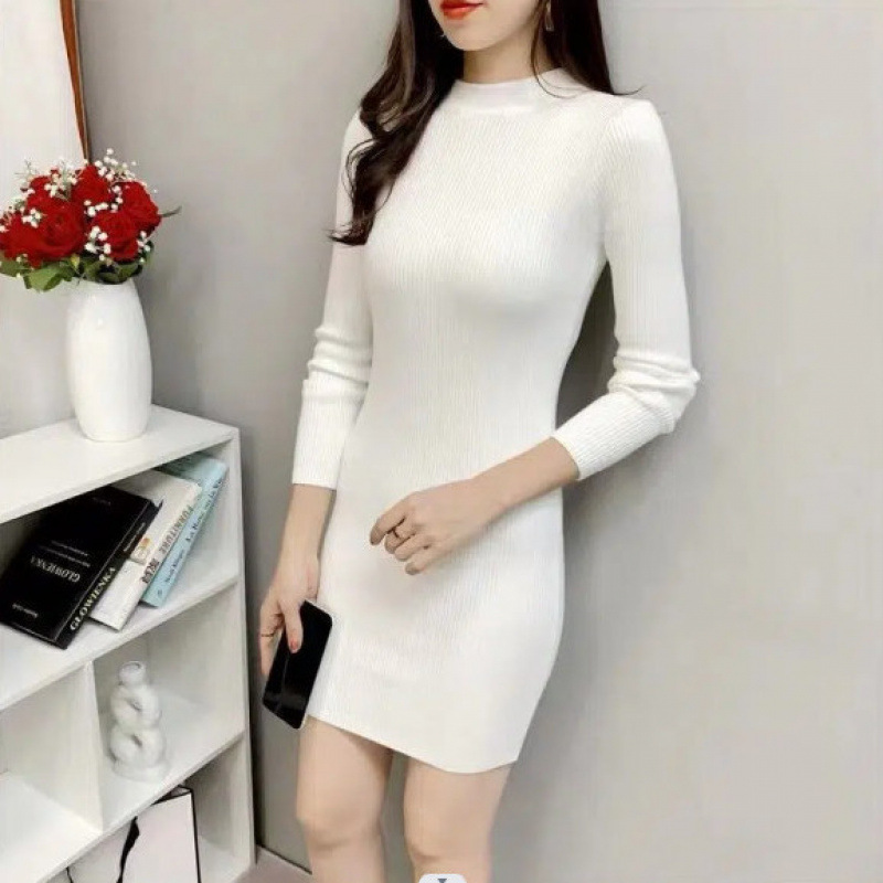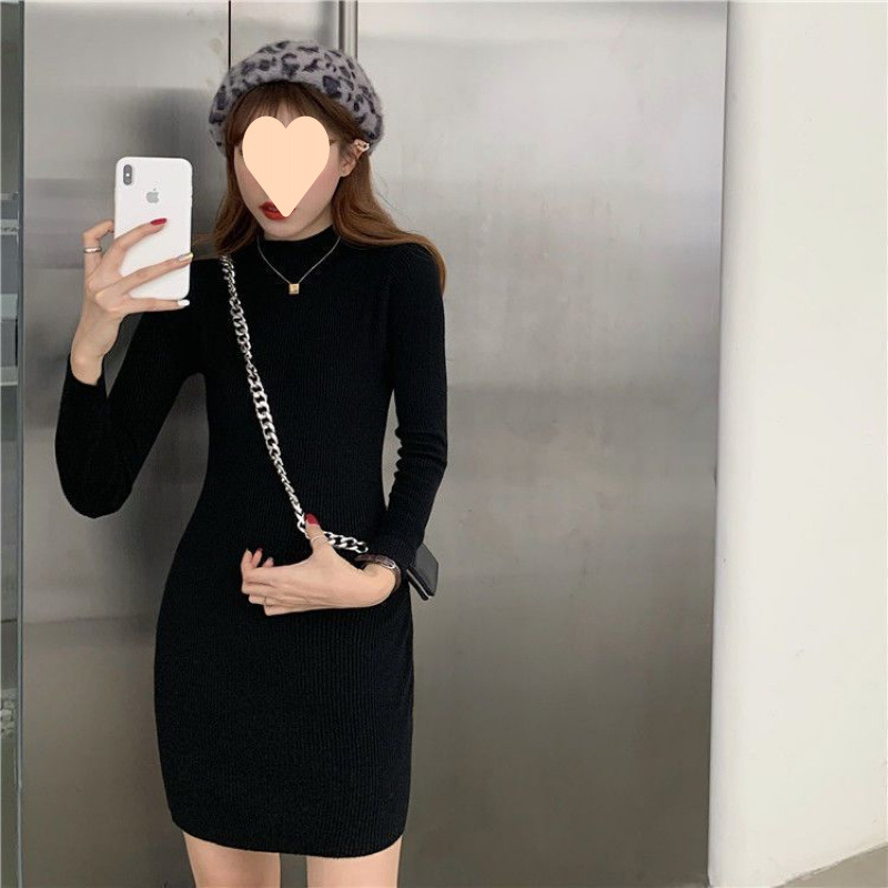 기모 패션 슬림핏 슬림핏 하이 칼라 원피스 여성용 한국 스타일 플러스 사이즈 긴 소매 중장베이스 셔츠