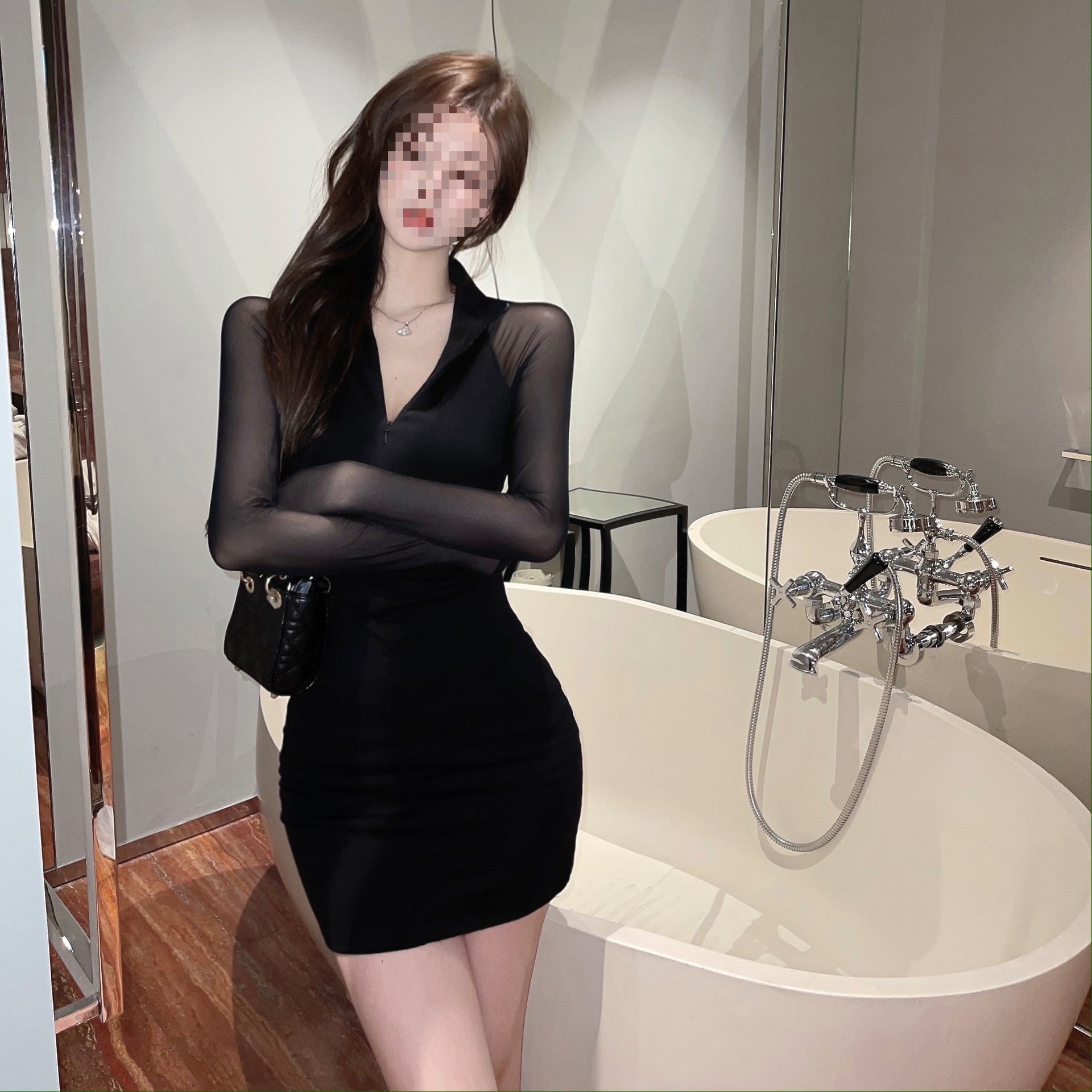 여성 패션 기질 엉덩이 치마를 원피스 긴 소매 스티칭 봄과 가을 메쉬 세대의 국경스토어 가기