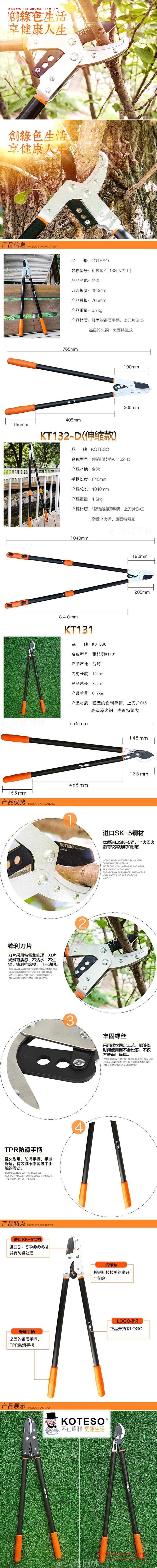 개척자 압력 가위 KT132 굵은 가지 가위 철회 가능한 가지 치기 과일 가지 가위 원예 노인 머리 가지 치기 가위