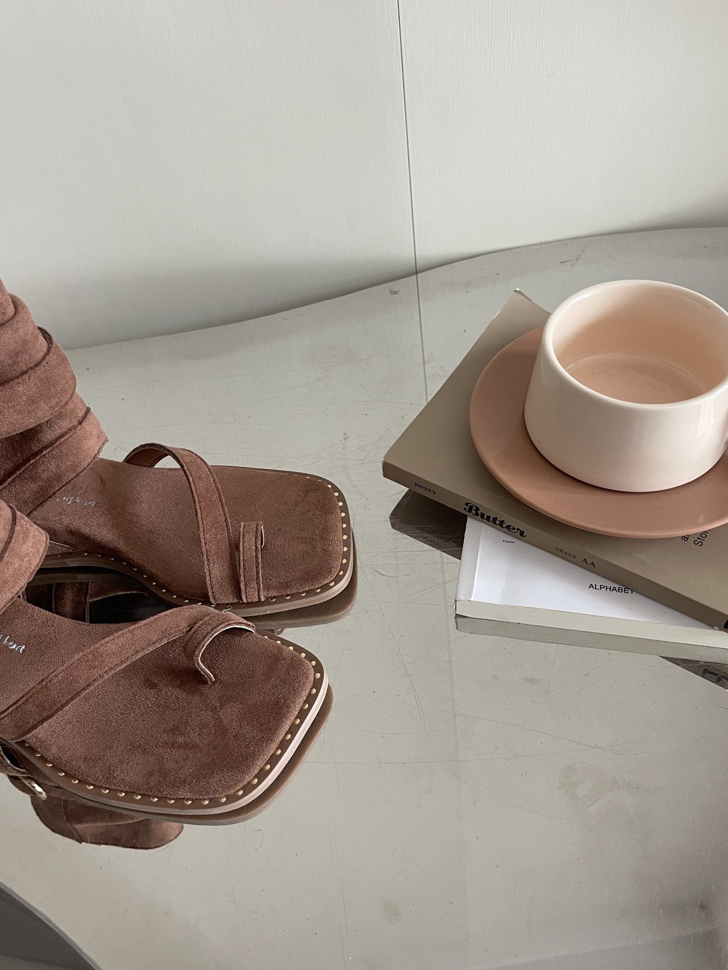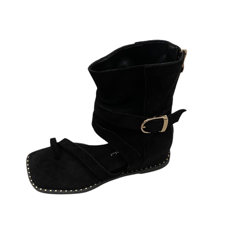 인테리어 강화 된 Peep-Toe 쐐기 로마 부츠