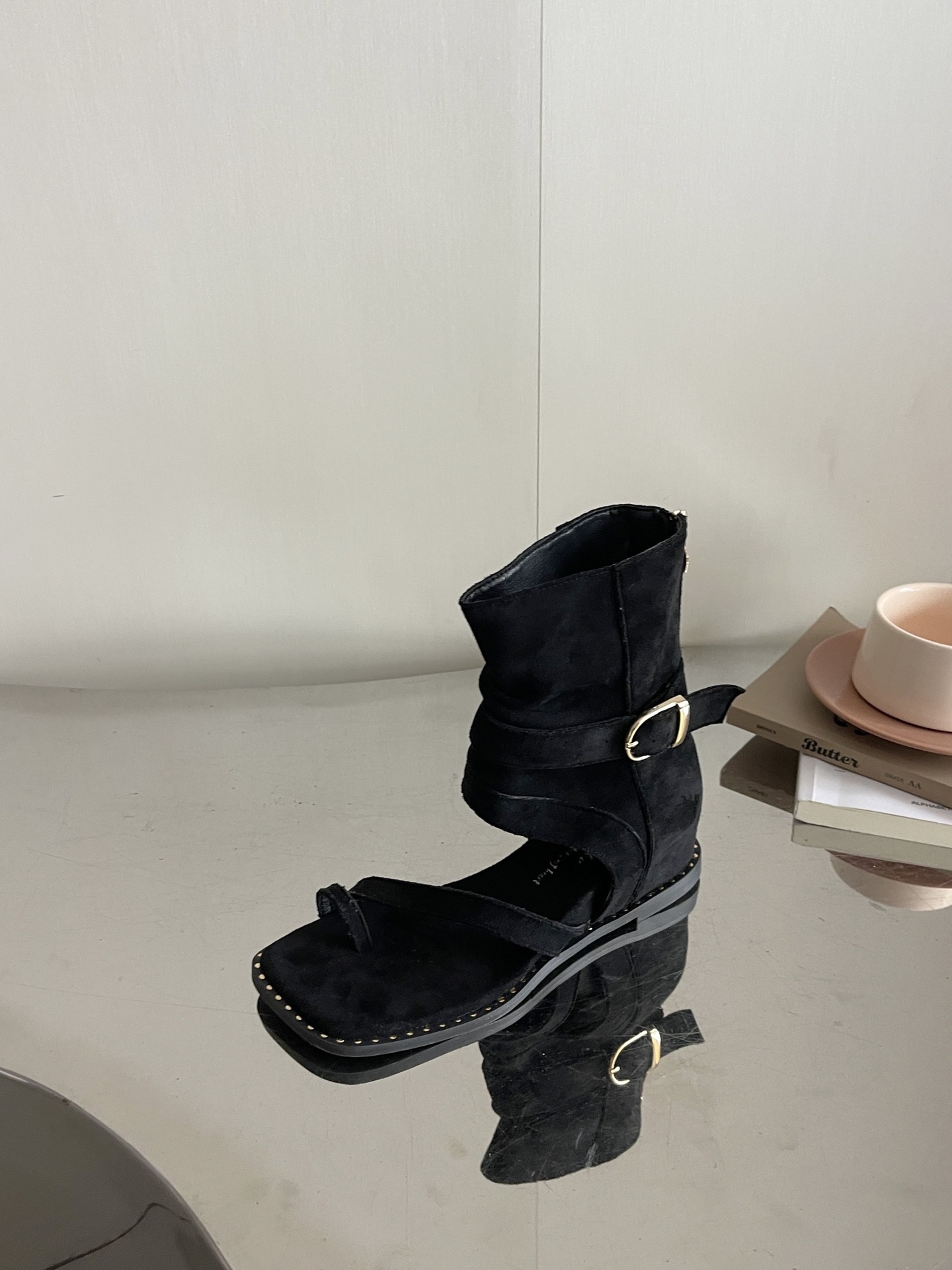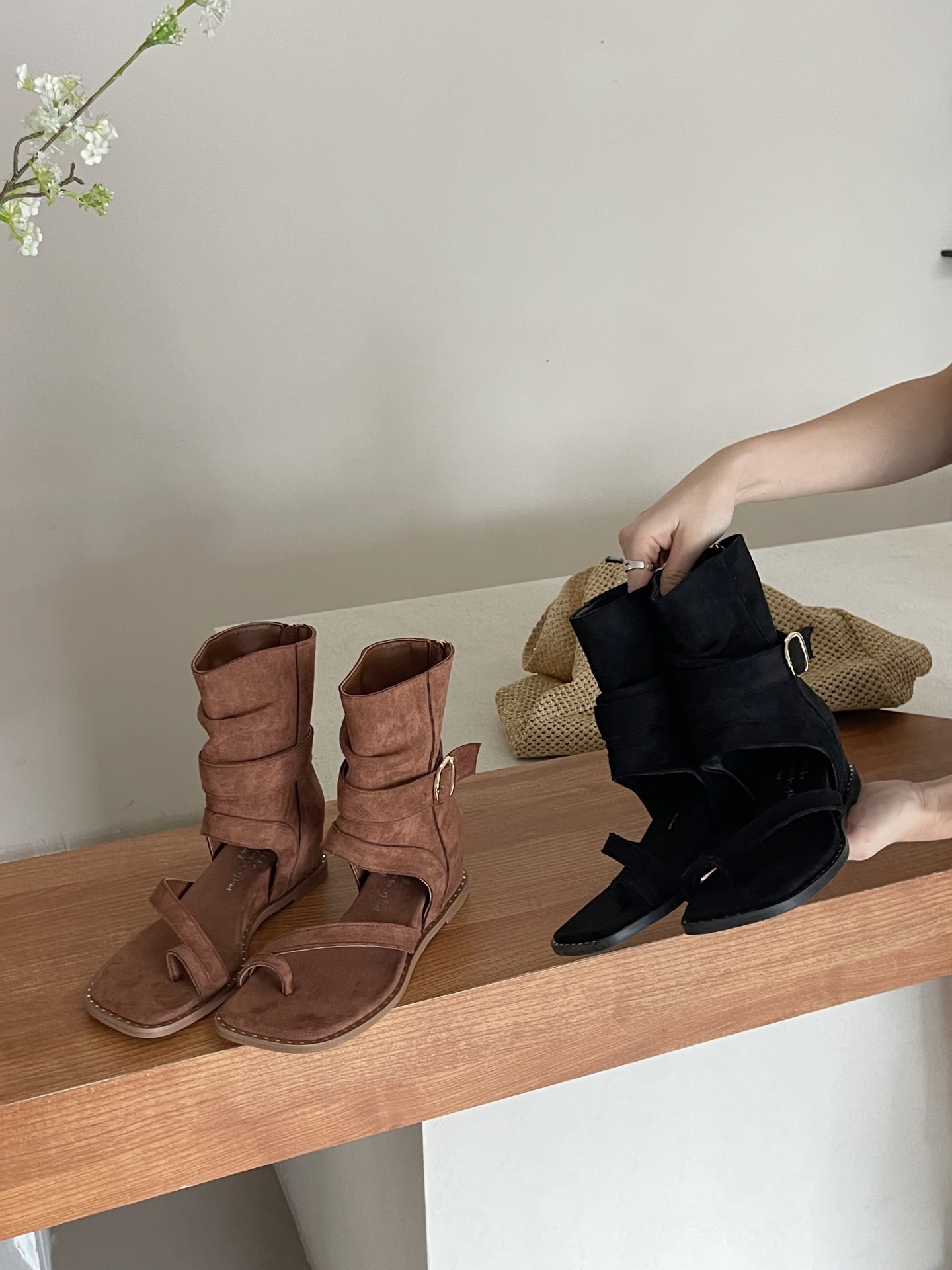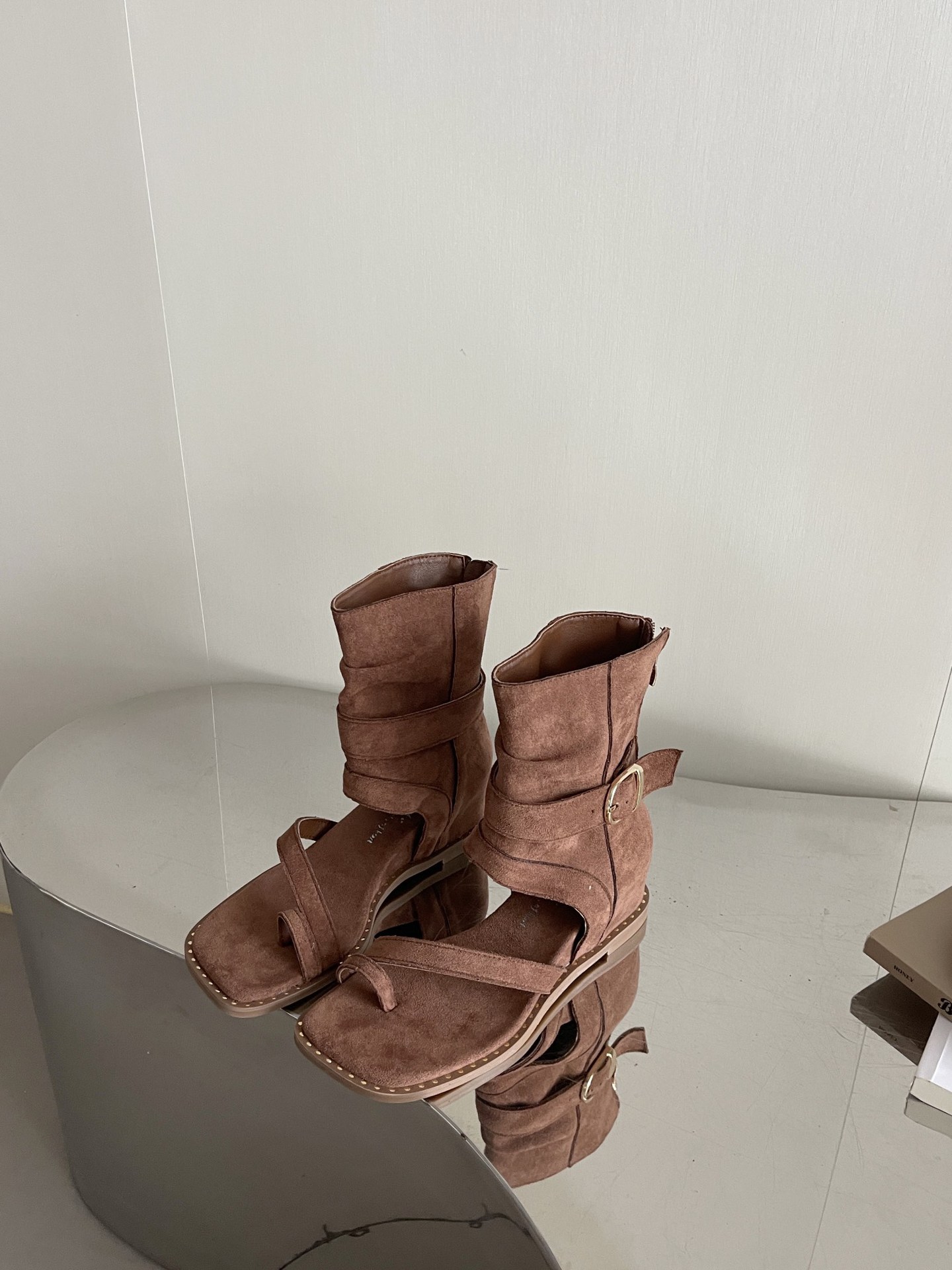 인테리어 강화 된 Peep-Toe 쐐기 로마 부츠스토어 가기