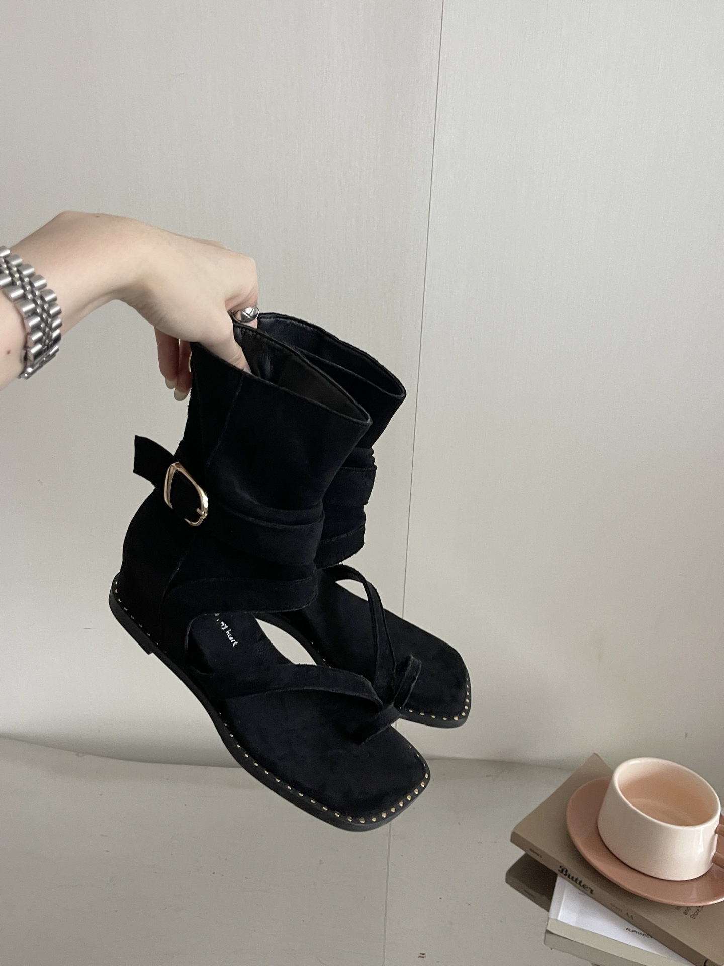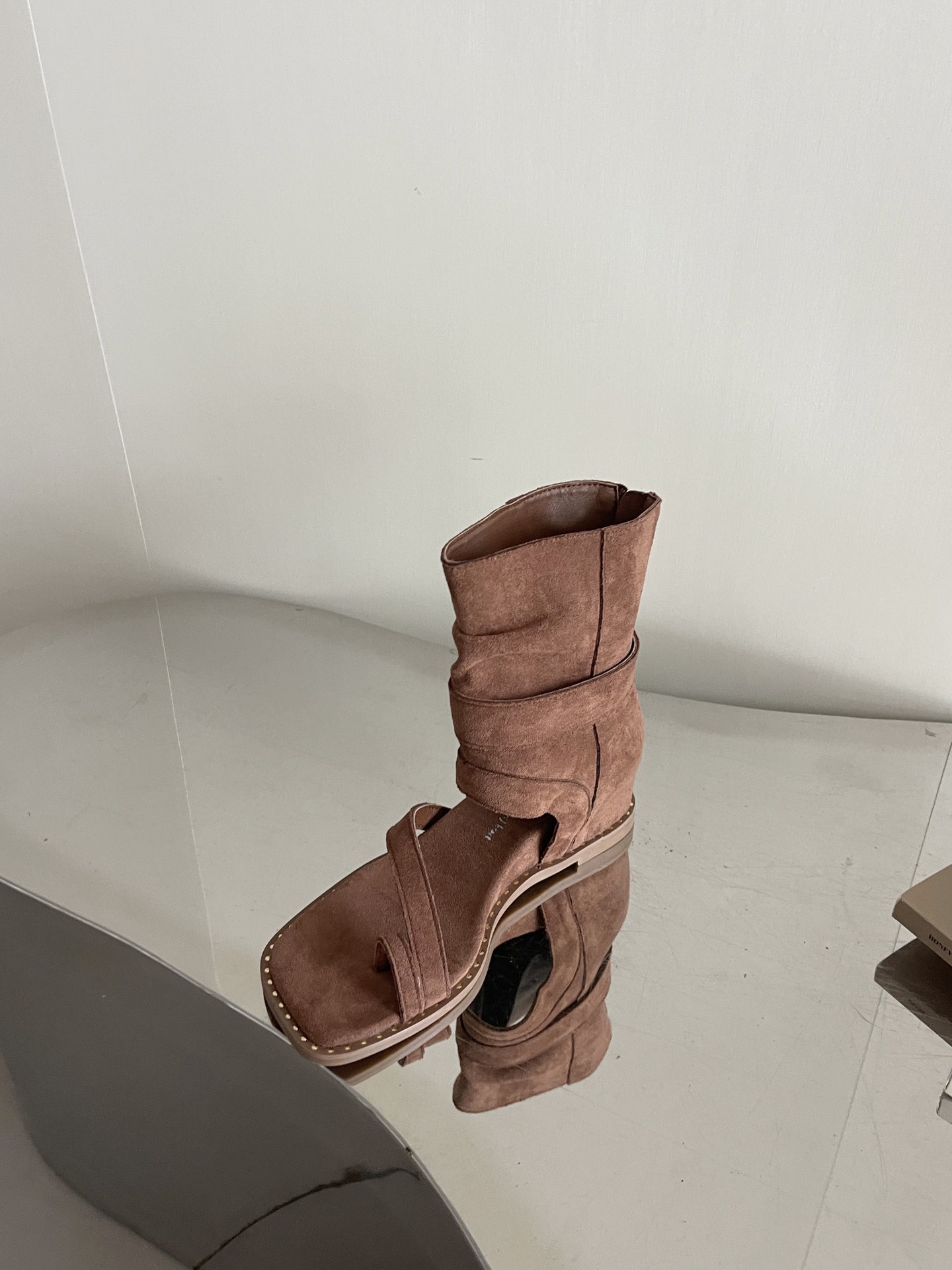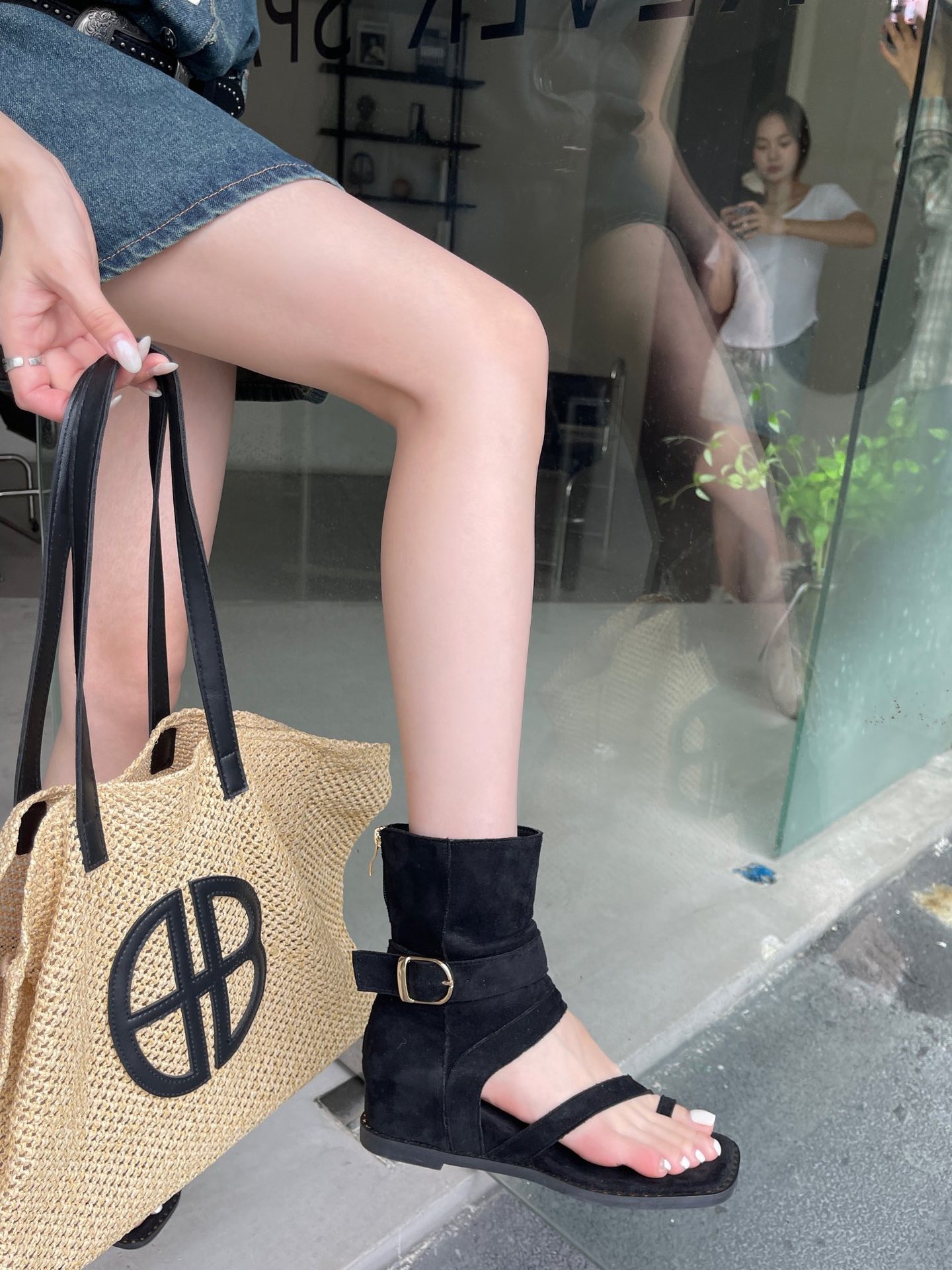인테리어 강화 된 Peep-Toe 쐐기 로마 부츠스토어 가기