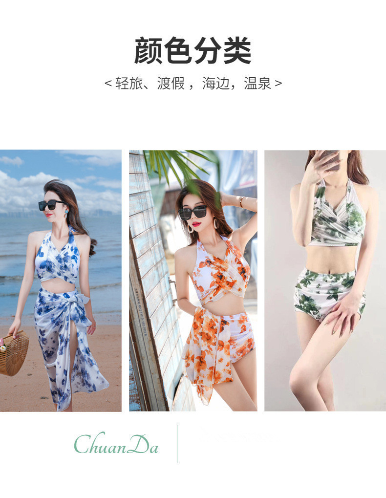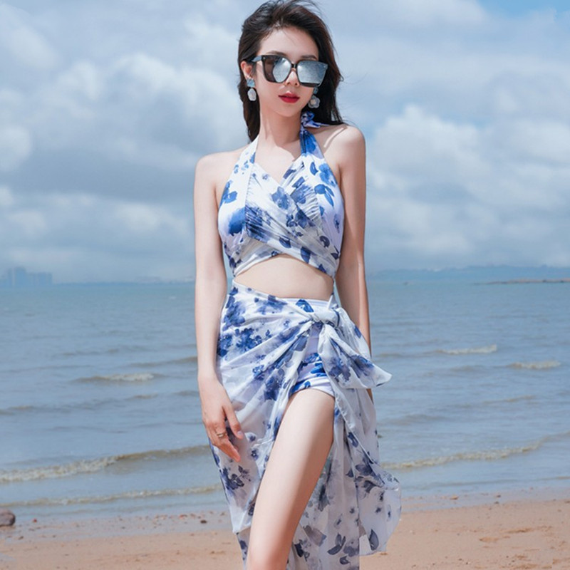 수영복 여성 2025 년 새로운 보수 분할 3 피스 세트 해변 휴가 작은 가슴 하체 커버 온천 하이 엔드 감각스토어 가기