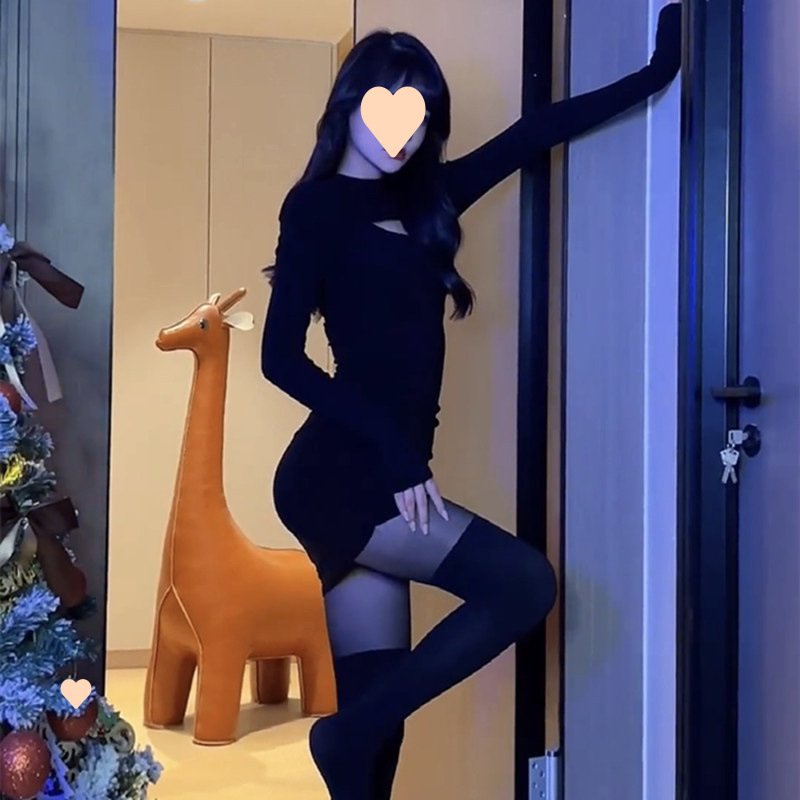 2024 봄과 겨울 새로운 헵번 스타일 스파이스 소녀 우아한 디자인 센스 슬림 핏 슬리밍 블랙 할로우 기모 원피스 여성스토어 가기