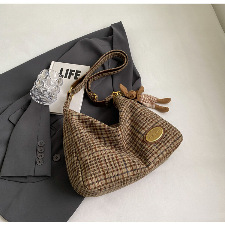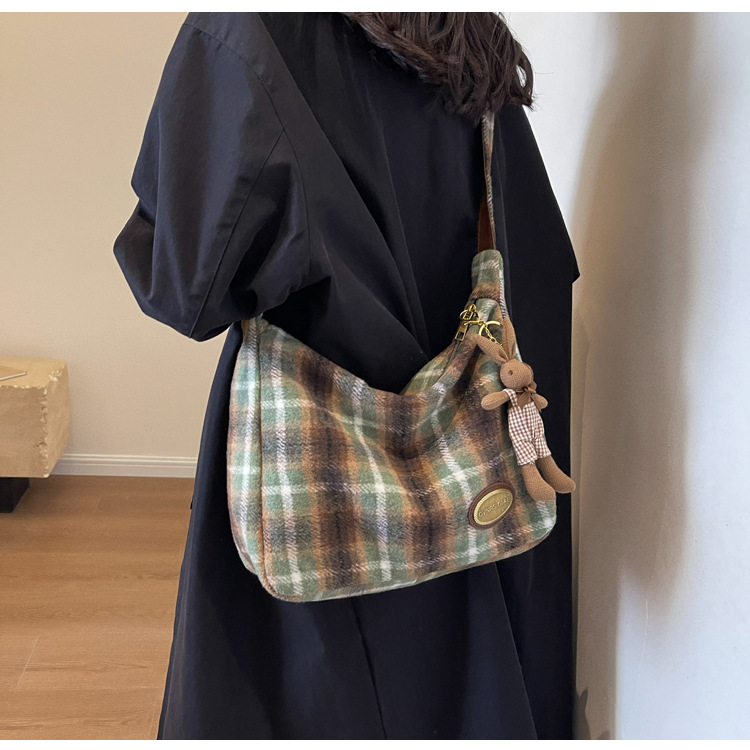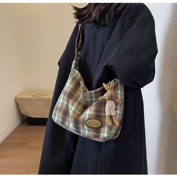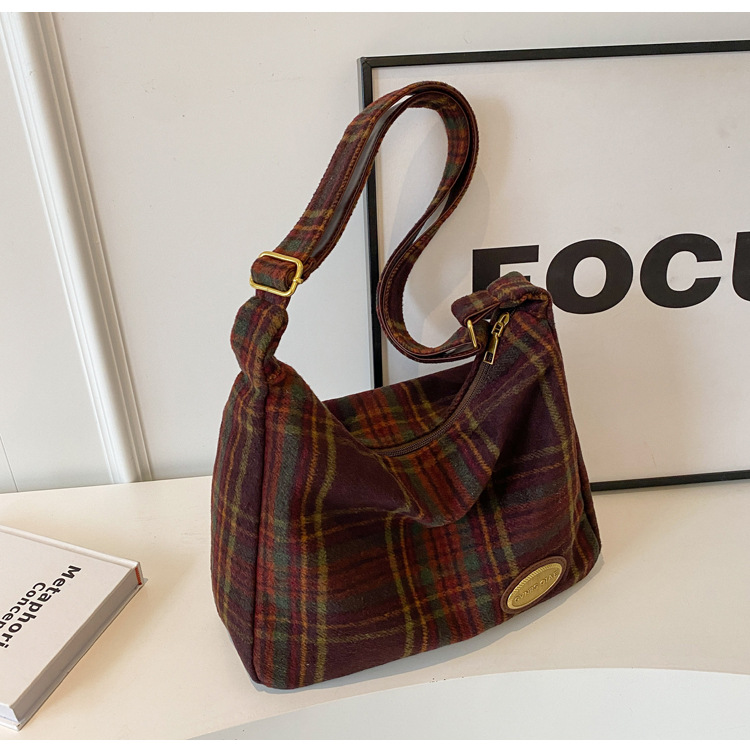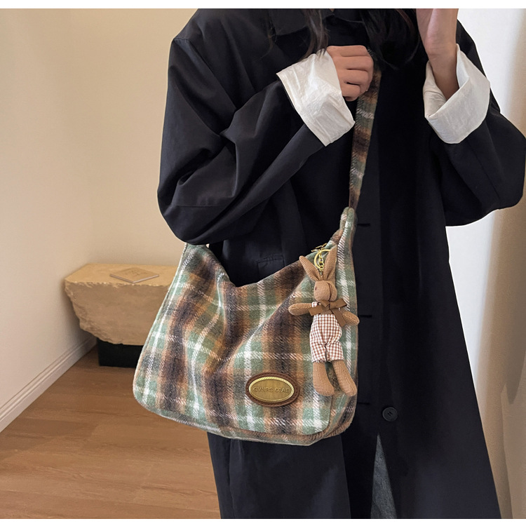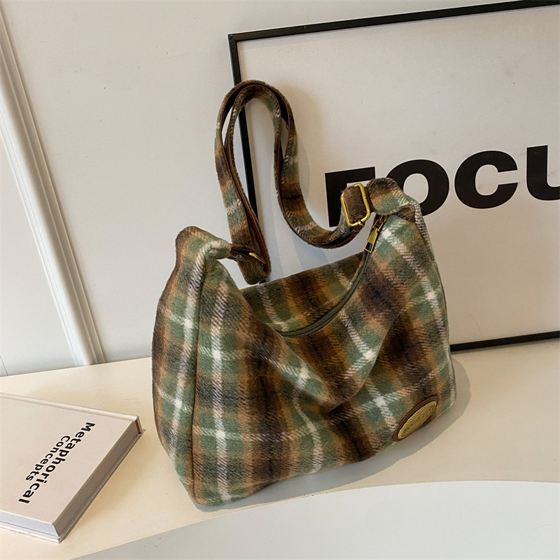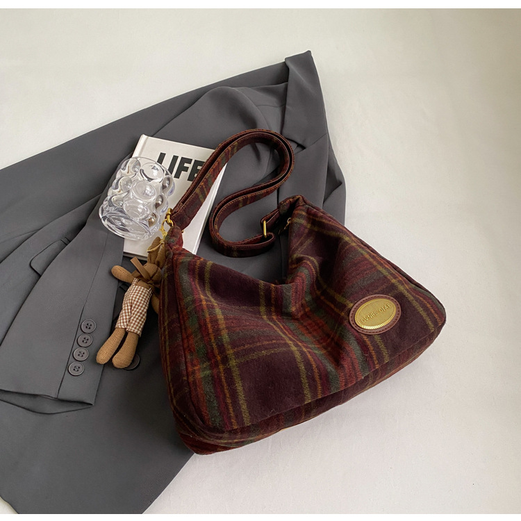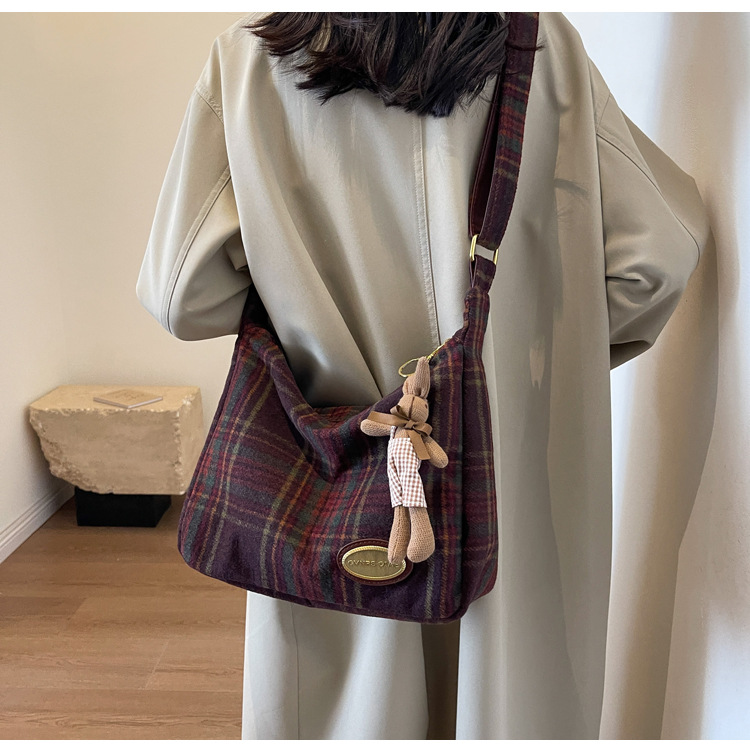 국경 간 새로운 미국 스타일 레트로 크로스 바디 백 여성 가을 및 겨울 격자 무늬 모직 숄더 백 틈새 유행 소녀 배낭