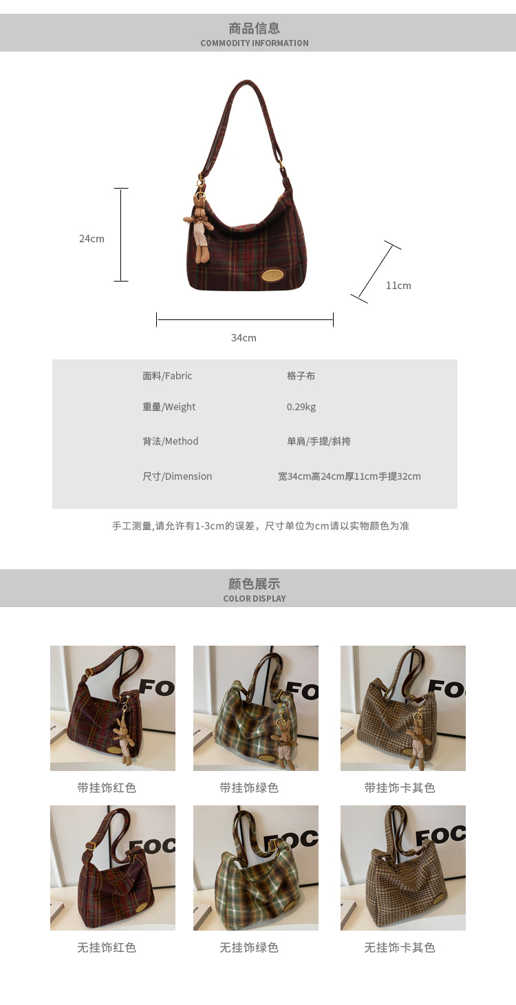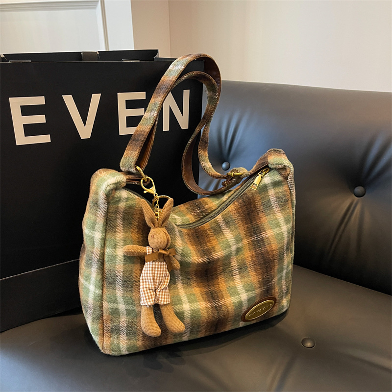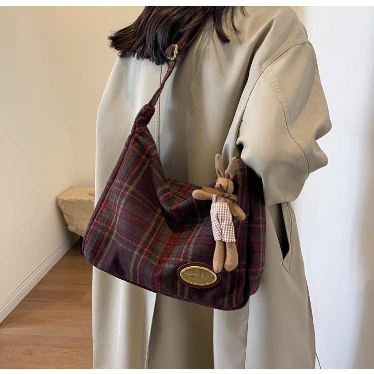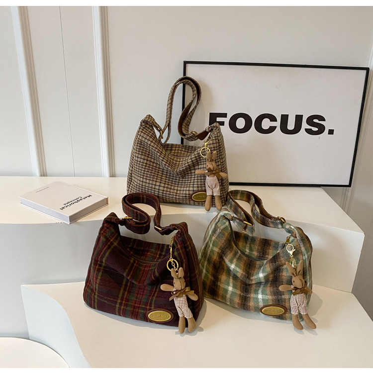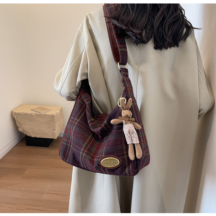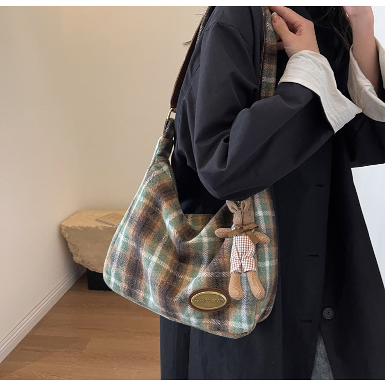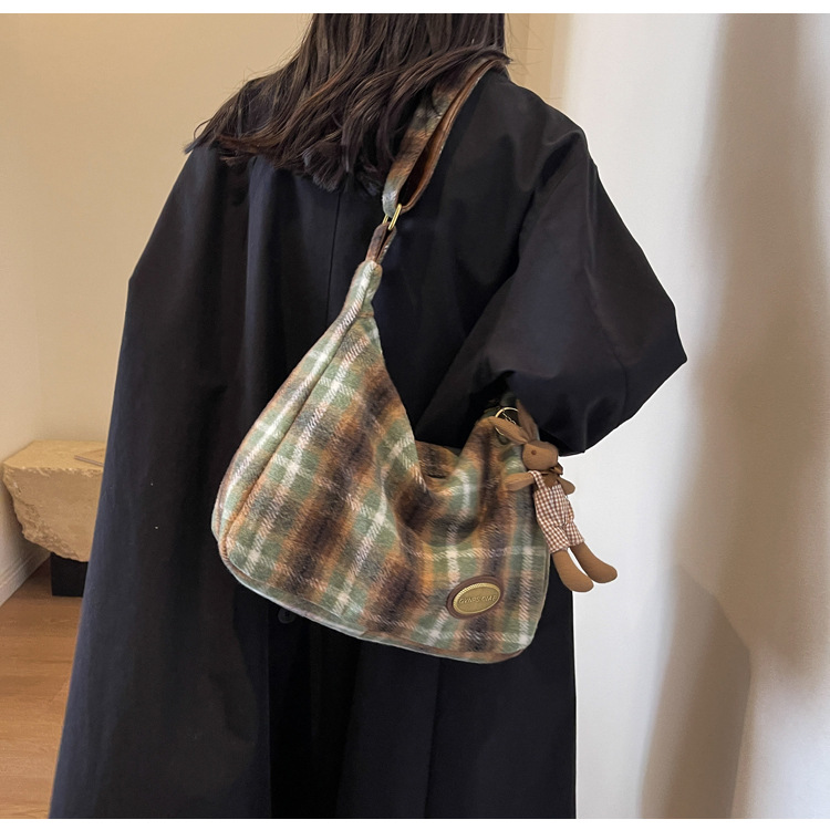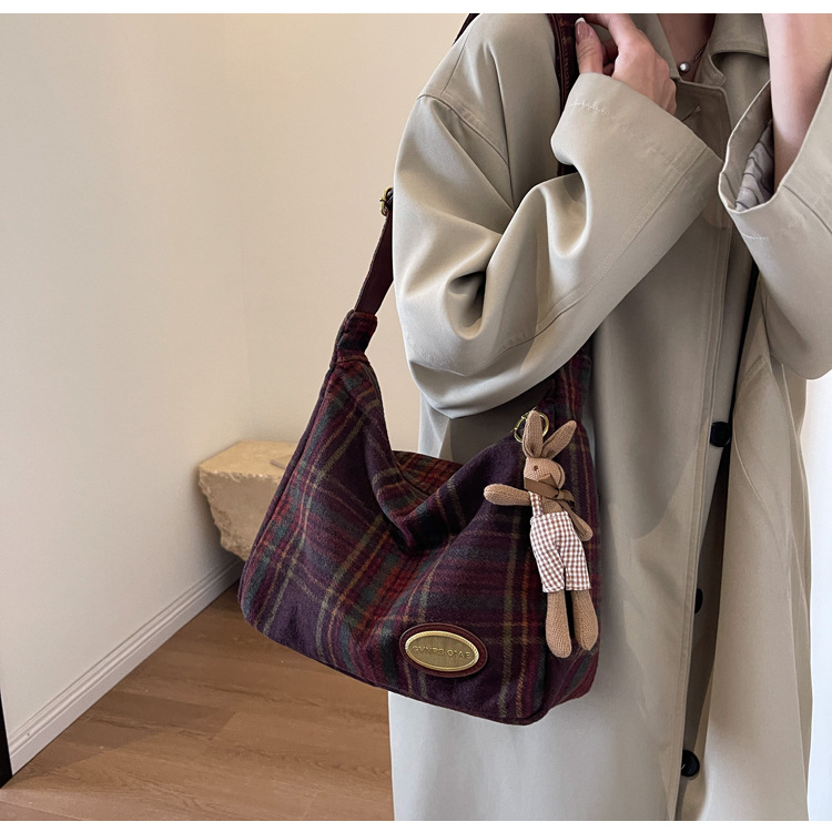 국경 간 새로운 미국 스타일 레트로 크로스 바디 백 여성 가을 및 겨울 격자 무늬 모직 숄더 백 틈새 유행 소녀 배낭