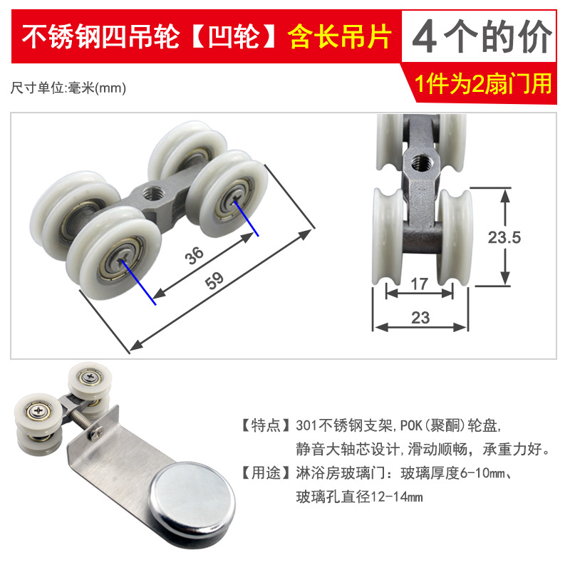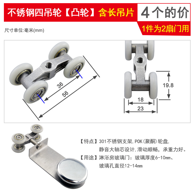 • 긴 걸이 부분을 포함한 스테인레스 스틸 4개 걸이 바퀴[오목 바퀴]: 4개 가격
