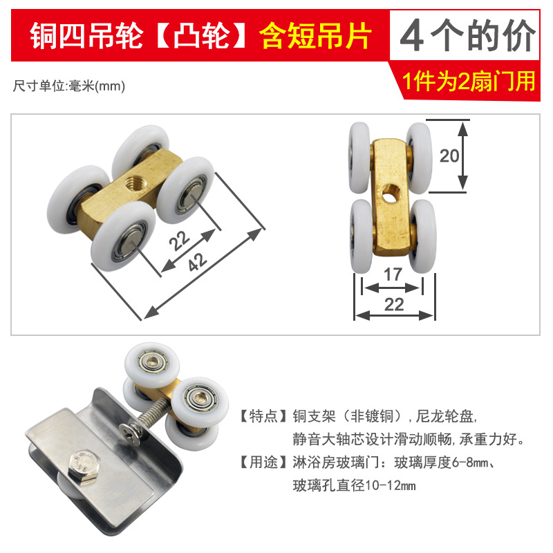샤워 룸 도르래 욕실 유리 문 매달려 휠 슬라이딩 도어 롤러 샤워 룸 휠 발 구리 브래킷 휠스토어 가기