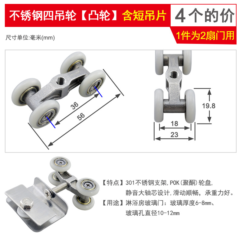 • 짧은 걸이 부분이 있는 스테인레스 스틸 4개 걸이 휠[캠]: 4개 가격