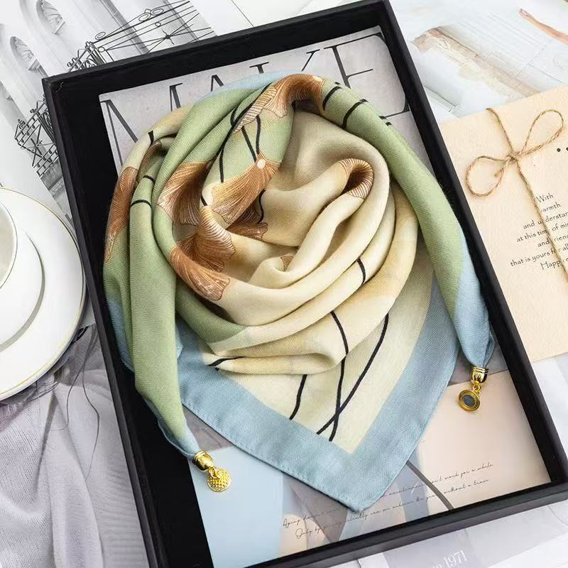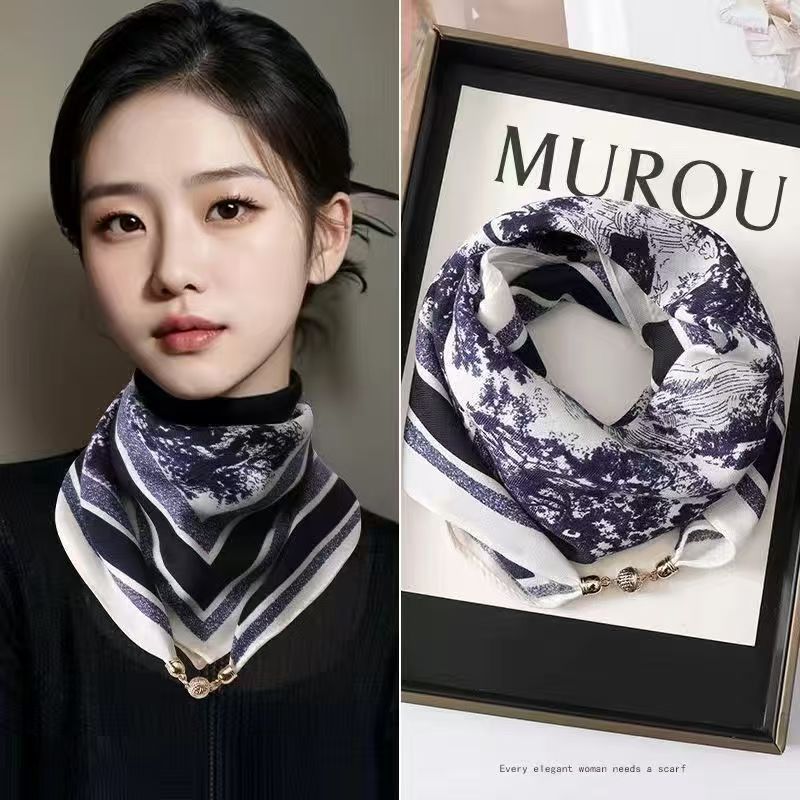 스퀘어 스카프 여성의 새로운 자석 버클 목 보호 작은 스카프 여성의 가을 및 겨울 면화 린넨 목 스카프 보호